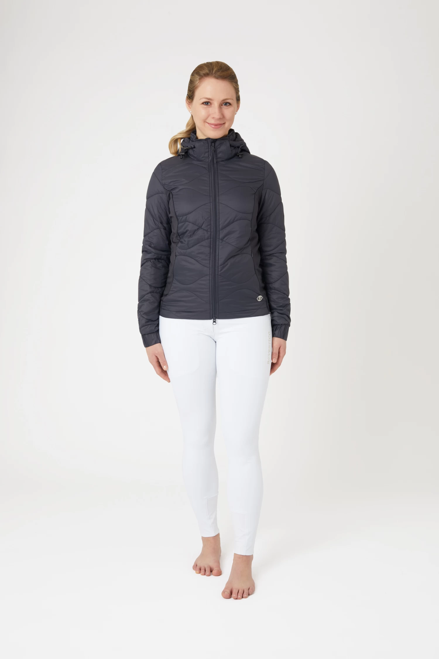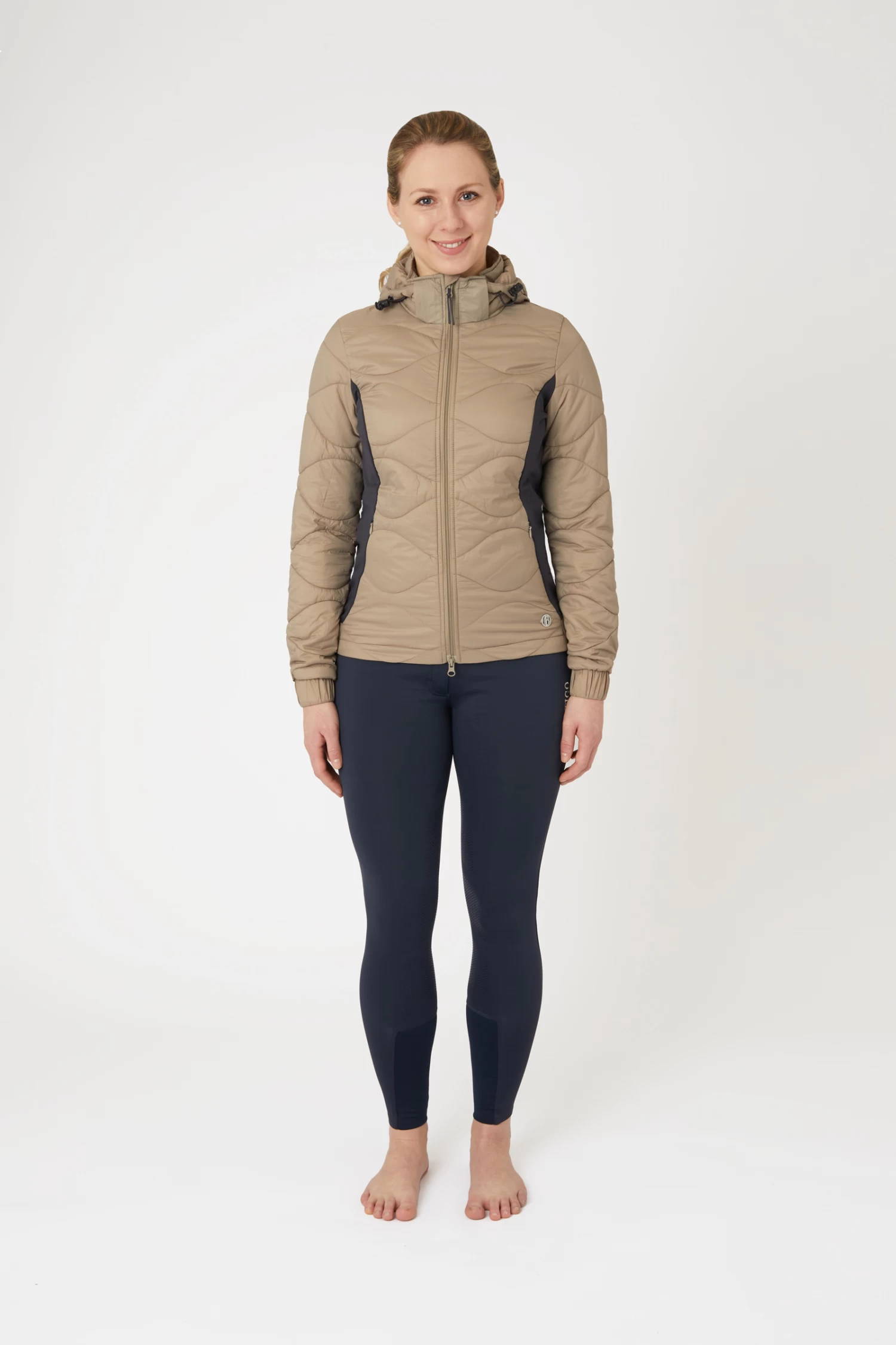 The B Vertigo Brielle hybrid jacket is made from light material that is warmly padded. Elastic fleece provides additional warmth, while breathable mesh inserts offer ventilation. The hood is attachable with press buttons. Two zipper pockets keep your belongings safe. Neutral colours are easy to incorporate into your riding wardrobe. Elastic hem and cuffs make sure this jacket stays in place. Also available as vest version (#33626).