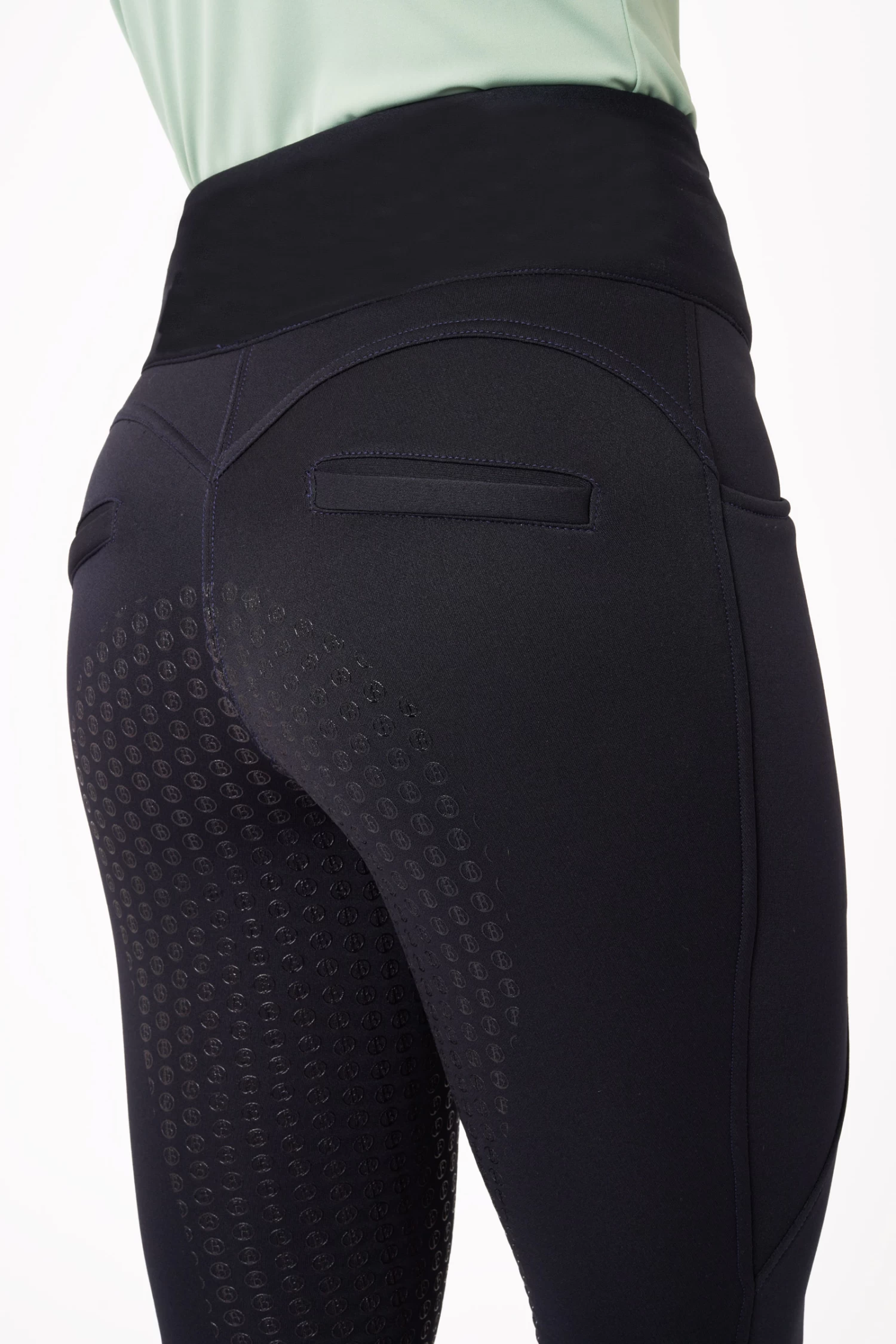Their combination of style, comfort, and practicality makes them an essential addition to your wardrobe. The high-rise waistband provides excellent coverage and support. The super comfortable fabric is stretchable, breathable, and brushed on the inside fo extra warmth on cold days. A convenient phone pocket sits on the thigh and a silicone full grip provides a good seat in the saddle. Both, fake fly & pockets add to the trendy design. Get ready to turn heads and experience unparalleled performance in these versatile leggings. Order yours today and experience the difference!