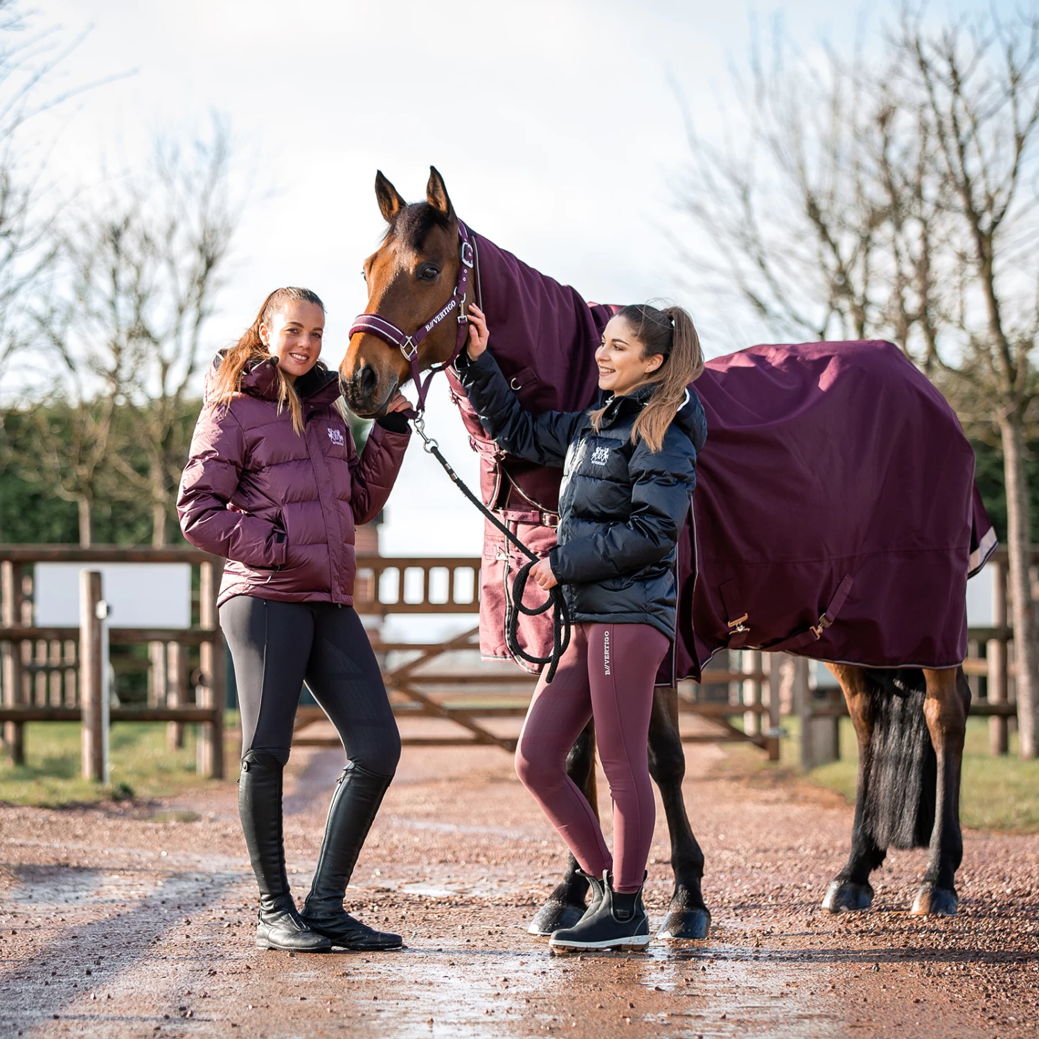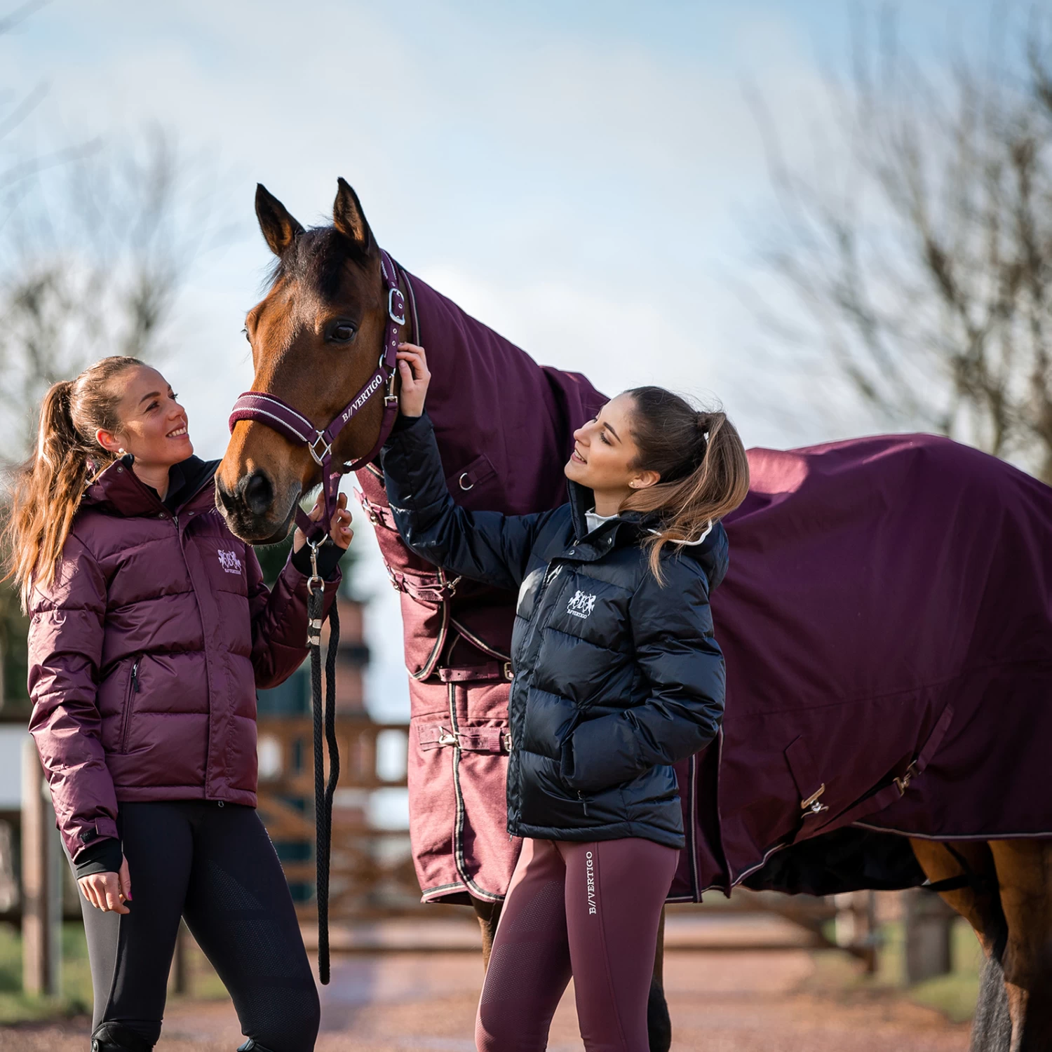 B Vertigo brings you another high quality and super attractive coat, made with shimmery, easy clean shell fabric. Feather down padding is extremely warm but also breathable to maintain your optimum body temperature. This jacket is suitable for many different uses – wear whilst riding, while doing jobs at the yard or simply casually. A windproof outer fabric boosts the insulation performance. The hood not only protects your face from the wind but features a stylish rib trim for an added chic touch. The 2-way zip allows the wearer to sit comfortably in the saddle, and pockets with zips keep possessions safe whilst riding.