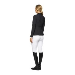 The women’s riding breeches are made from 4-way stretch jersey. The technical material provides high breathability and freedom of movement: this fabric adheres perfectly to your body, without constriction. The transparent knee grip allows the right stability on the horse, while the stretch-knit socks improve the fit beneath your boots. It features two front pockets and a zip up front with botton. CT Team customisation.