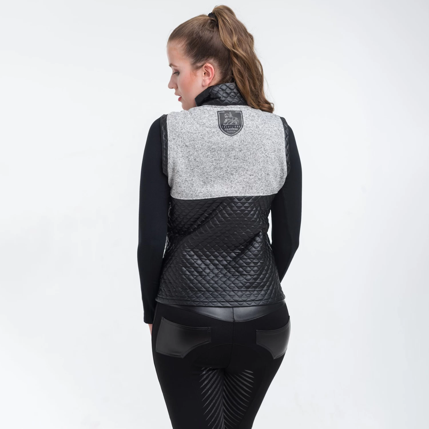 This extraordinary equestrian vest is a perfect choice for everyday use thanks to its technical solutions what allow for full freedom of comfortable movement. Light knitted fleece fabric combined with water resistant quilted material provides maintains a dry environment for the rider. The vest is designed to move gently while you ride, while the zippered pockets keep your belongings safe. A two way zipper in the front of the vest can be opened from the bottom to allow the rider to sit comfortably in the saddle.