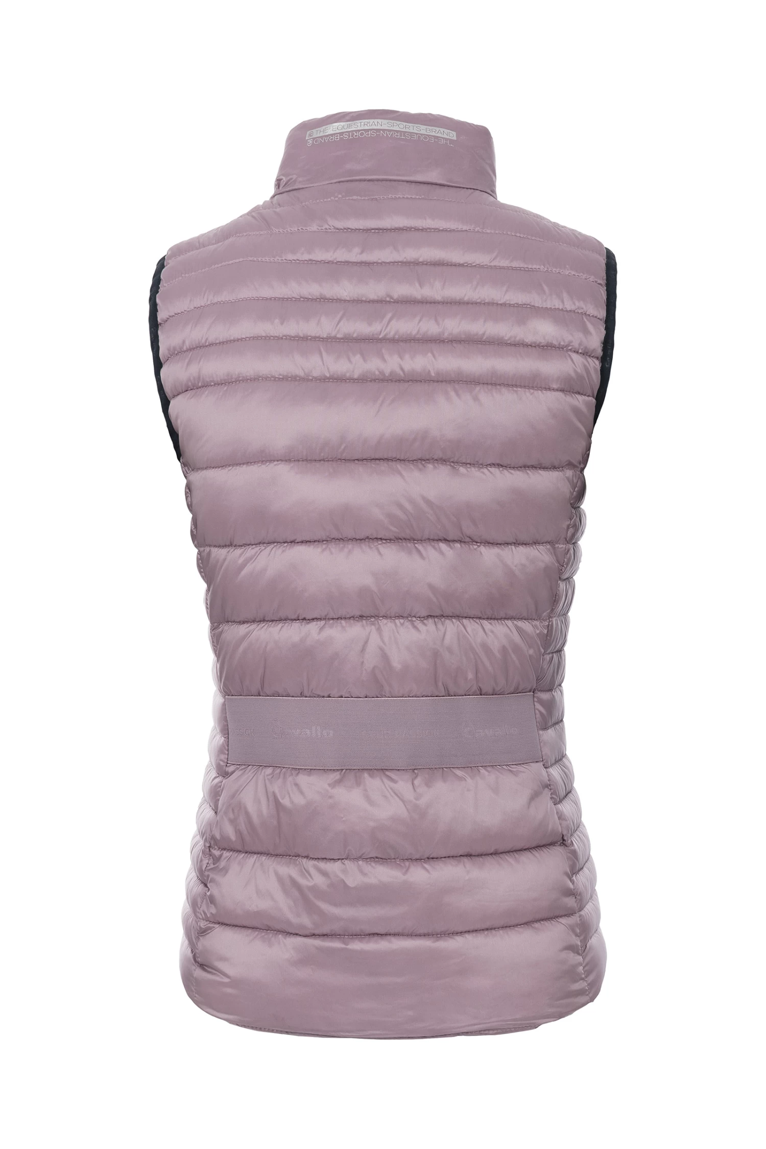 With stand-up collar and slight waistline. 2-way front zip with Cavallo woven ribbon pull. Two front pockets with zips. Inside pocket with zip. Silver prints, e.g. Cavallo logo on the left breast and Cavallo artwork at the back centre of the collar. Tonal Cavallo artwork on the zip underlay in the front centre. Dark blue lining with discreet all-over stirrup print. Decorative Cavallo elastic band insert at the waist in the back. Narrower quilting on the side panel and shoulders.