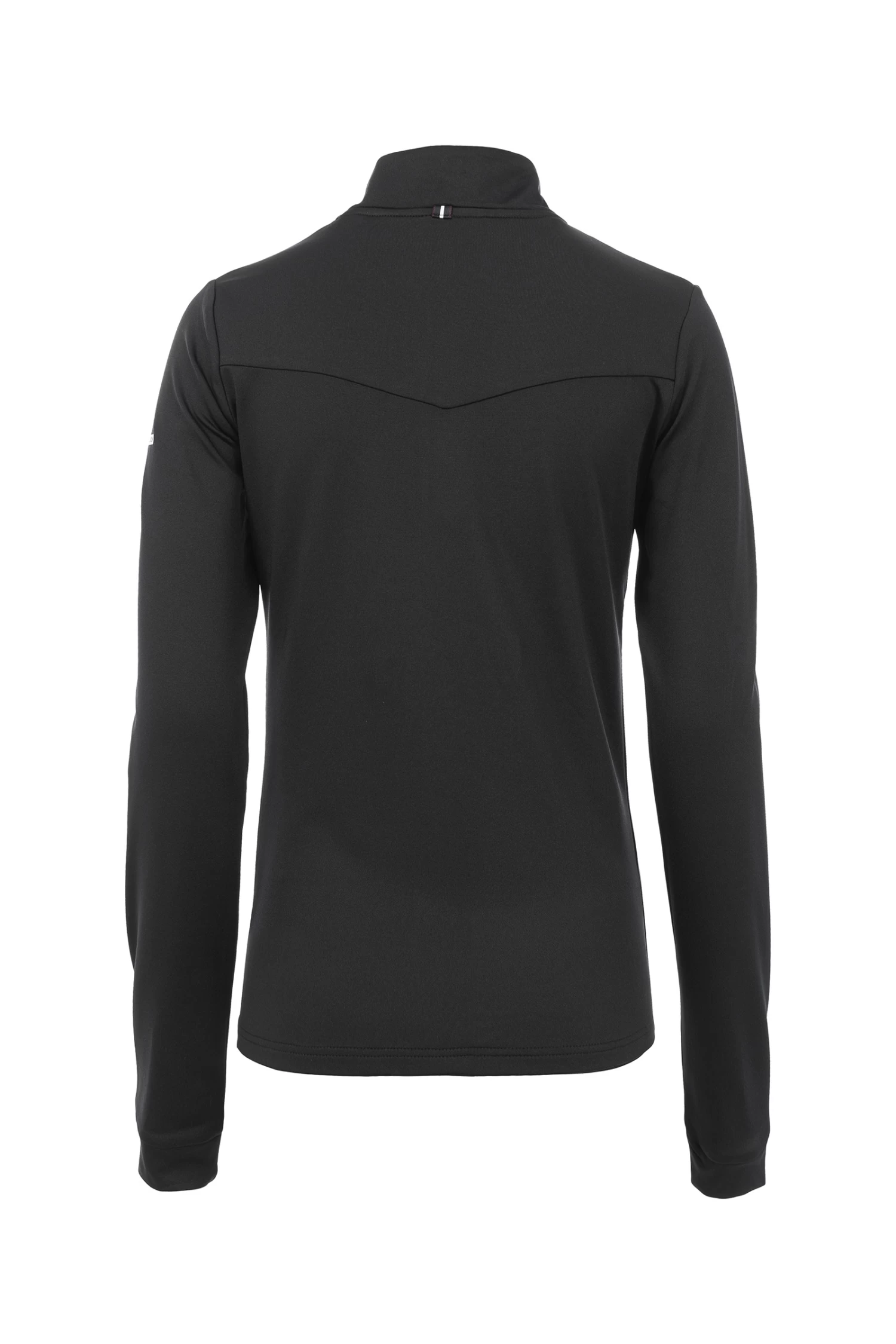 Made of bi-elastic functional material. Softly brushed inside for a comfortable feeling. Zip with jewelry pull with crystal on the collar. Silver artwork with crystals on the left upper arm. Silver artwork above the yoke on the front and along both side seams.
