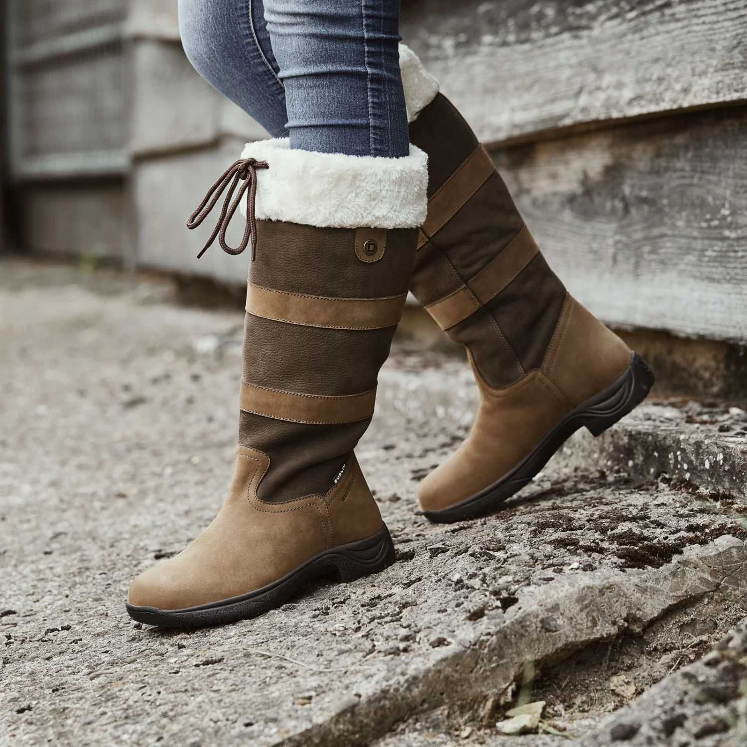 - Waterproof and breathable country boot with synthetic fleece lining