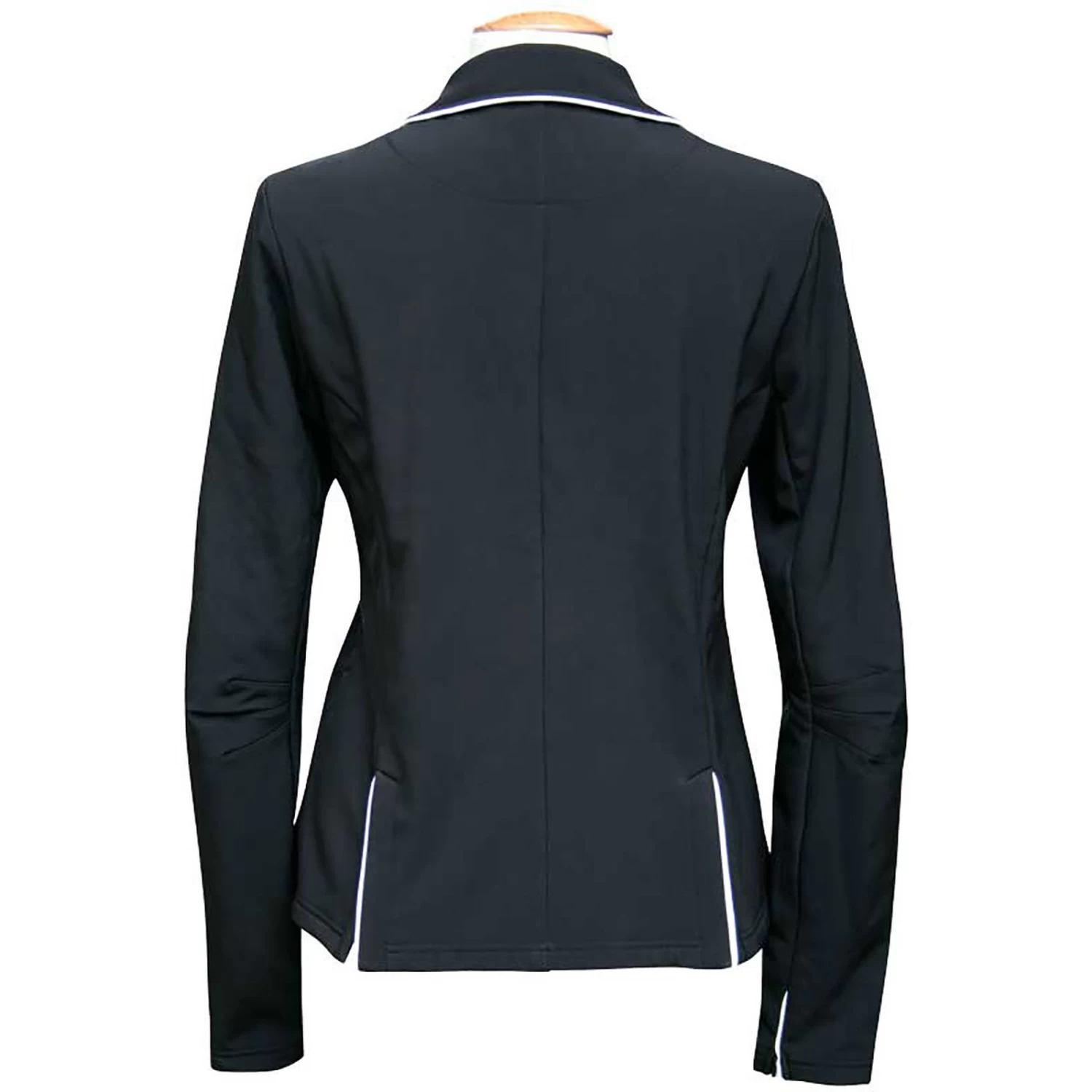 Sporty, competition jacket made from high quality, water-repellent, wind proof softshell fabric. Fitted model, two front flap pockets, contrast piping, two splits.