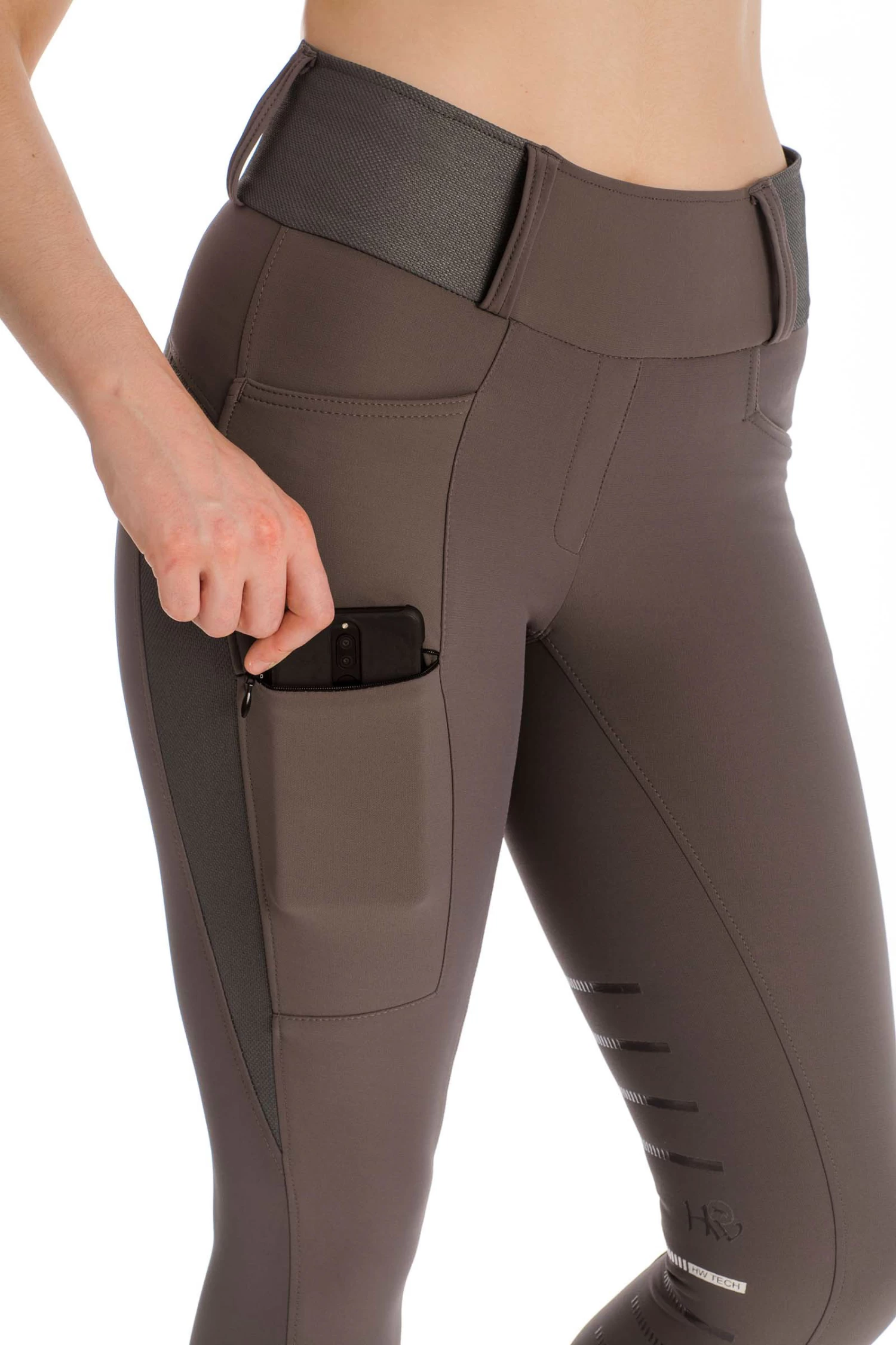 - Hybrid between breeches and riding tights