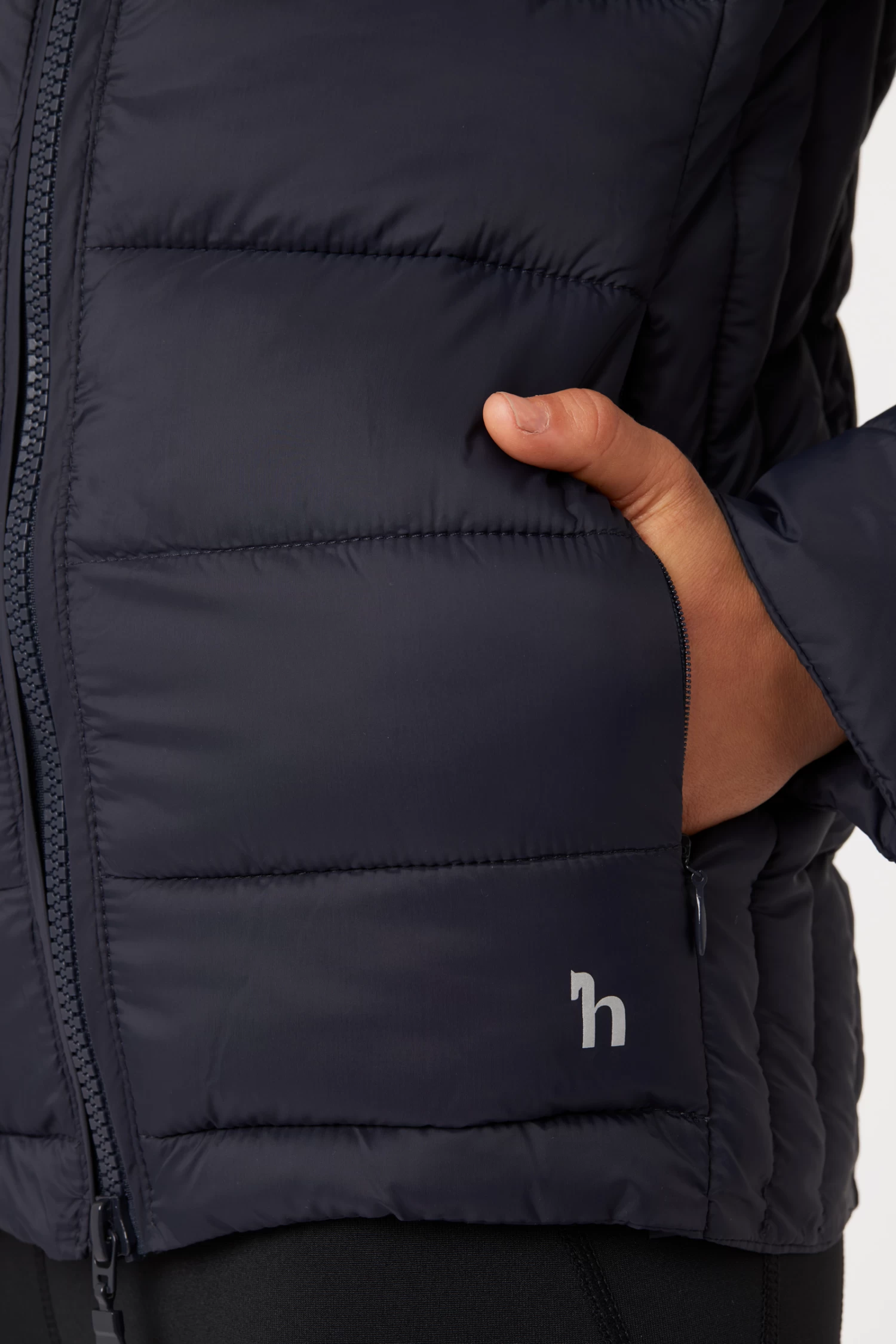 Cut specifically for kids, this jacket looks great around the stable on cool summer mornings. A traditional layer with lightweight padding is ideal to take the chill off on early morning or late day rides. The 2-way zipper, simple slant side pockets and lightweight fill make it easy to wear and slip on any time. Bold colours look lovely and match well with the rest of this collection.