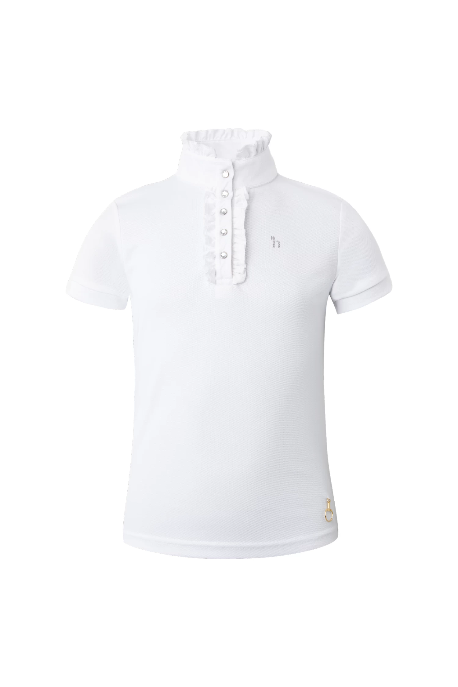 The Horze Christel kids show shirt is the perfect choice for a classy show outfit. Ruffle details at the collar and front placket look traditional, while crystal buttons and a logo at the chest bring a little something extra to your child’s show outfit. The breathable and lightweight fabric will keep young riders comfortable at their next tournament.