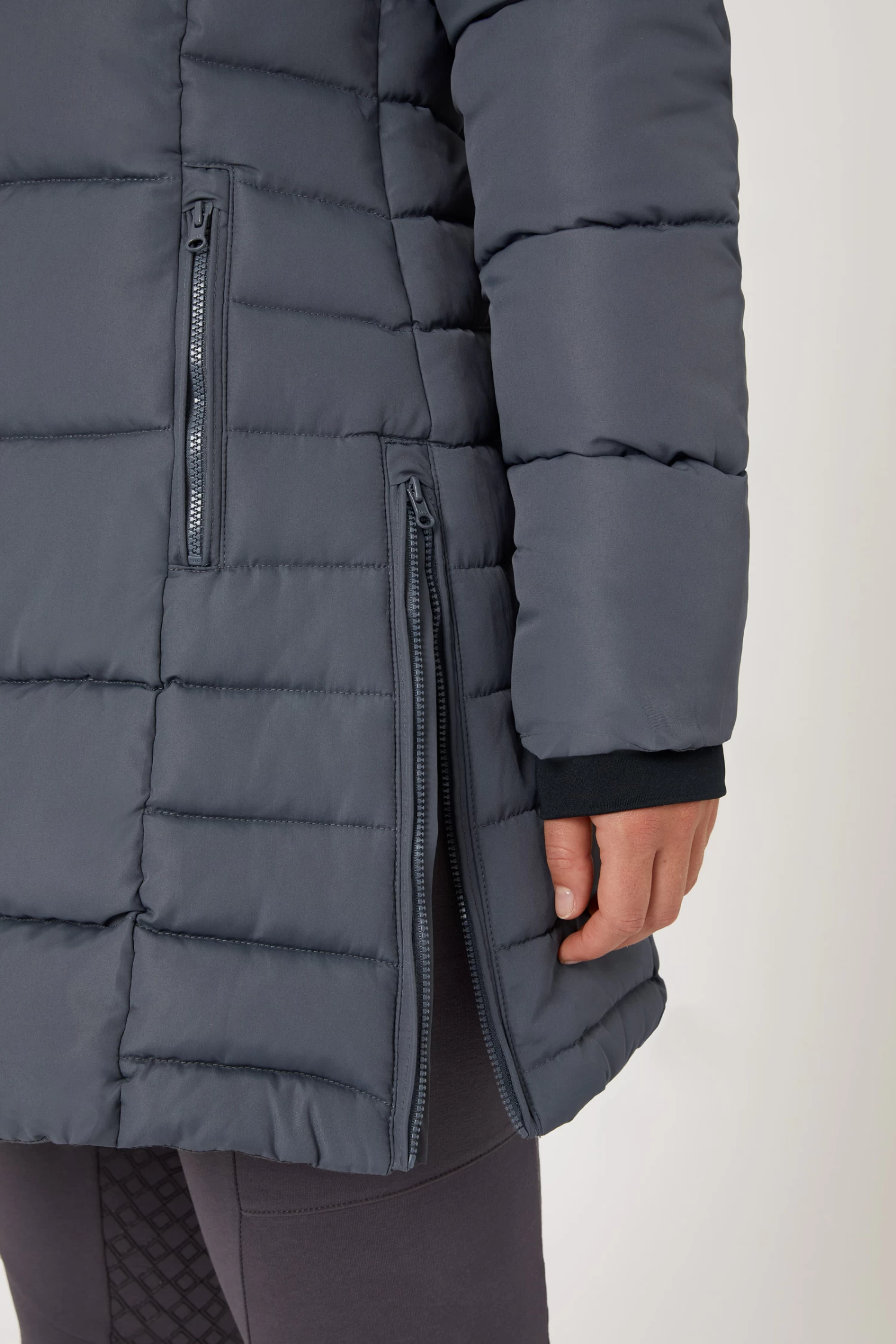 The Horze Claire riding parka is extra long to keep your whole body warm while riding. The light material does not restrict your movement or weigh you down. Zippers open easily for comfortable riding. Two pockets keep your belongings safe. The hood can be hidden when not used.