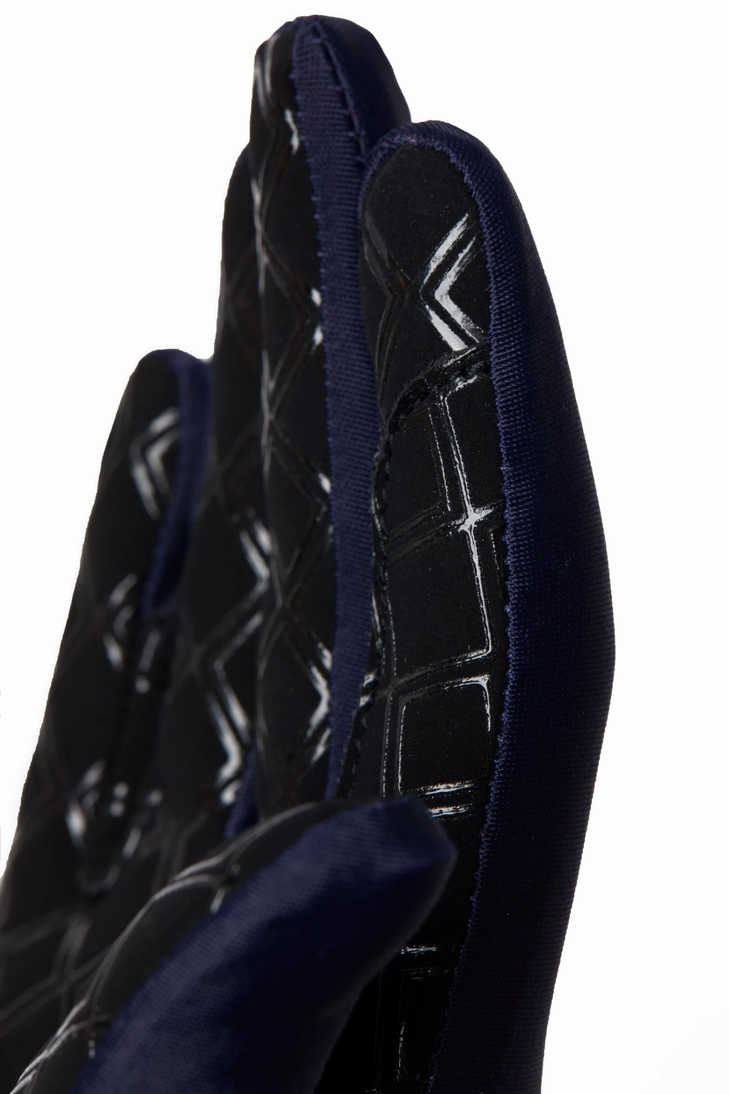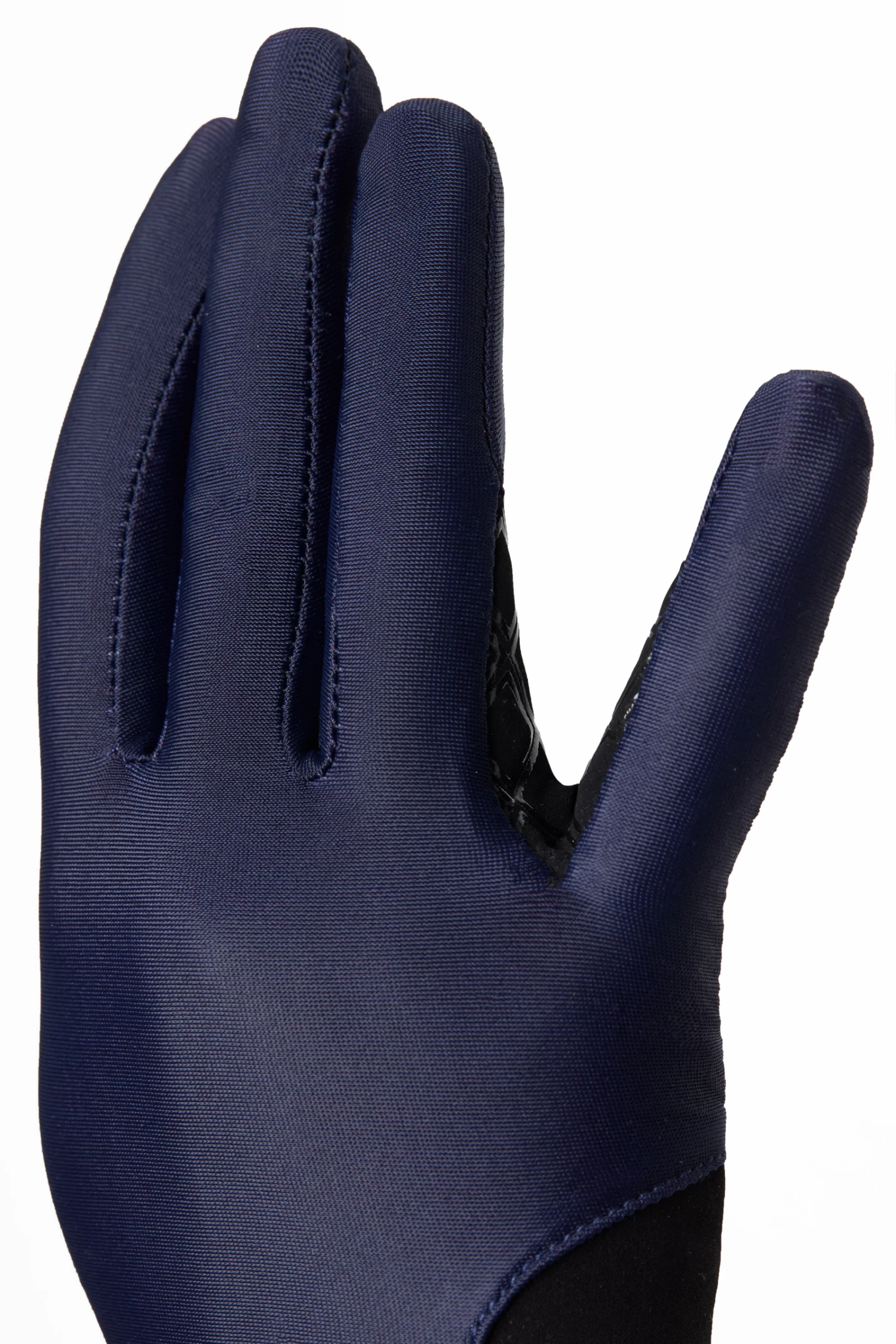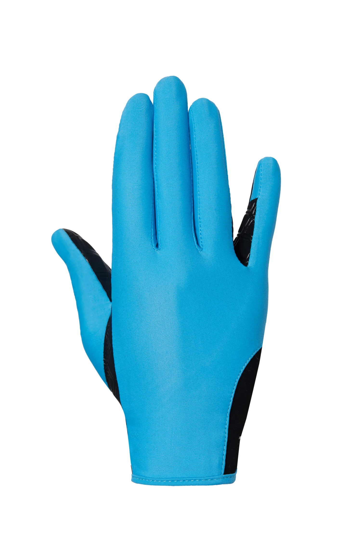 The Horze Eliana riding gloves are made from stretchy material, and equipped with grippy silicone on the PU leather palm. The elastic cuff holds them in place.