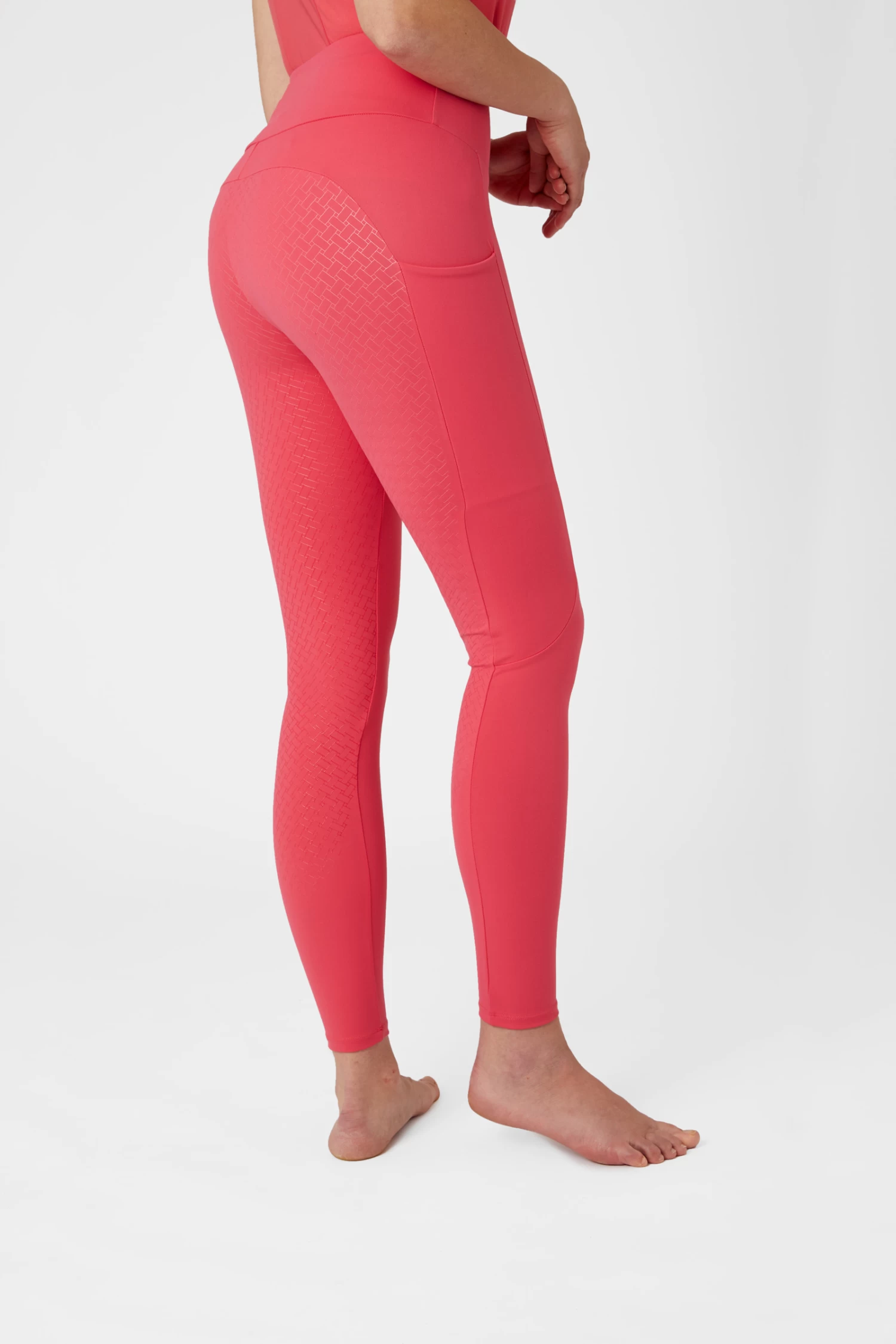 The Horze Ginny full seat riding tights are made from soft material that ensures ventilation while you are riding. Silicone provides great grip to the saddle. Thigh pockets keep your phone safe. The sporty design easily fits into your riding wardrobe. A high waist keeps these tights in place.