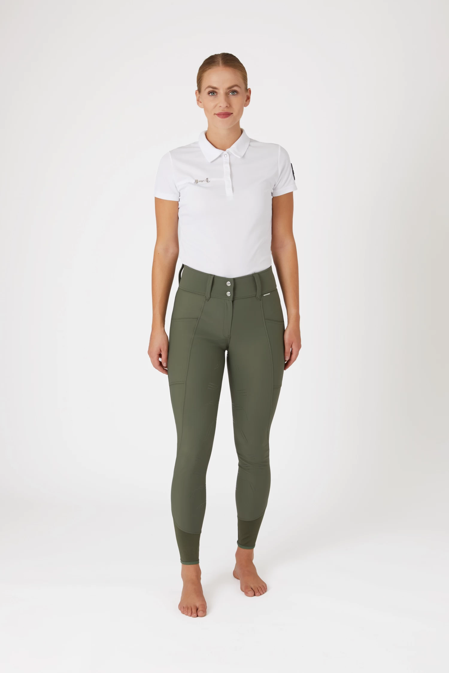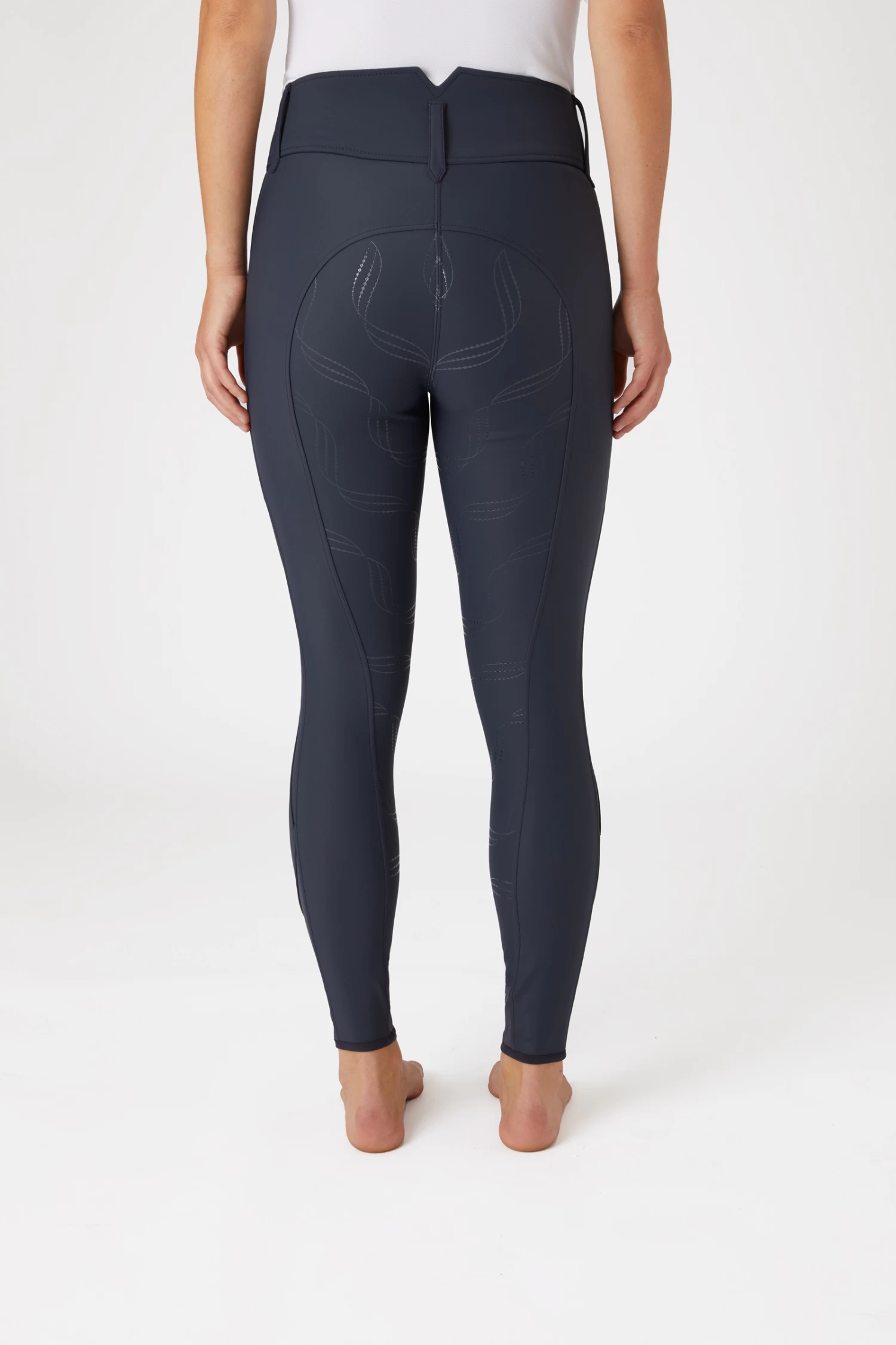 The Horze Indira breeches are elastic and high waisted. Thigh pockets are perfect for your phone. The silicone full seat keeps you safely in the saddle. Strategically places seams make for a stunning look. Also available as knee grip version (#36768).