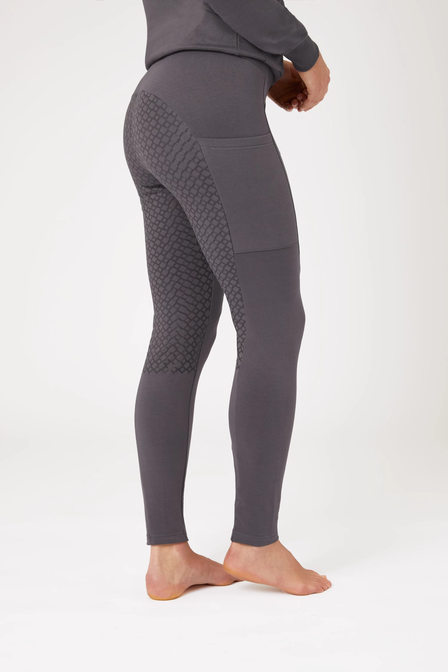 The Horze Jade full seat tights are made from soft material that is brushed on the inside for extra comfort. The high waist with draw string is super comfortable. Curved seams make for a stunning look. Two big pockets keep your phone in reach. Pair these riding tights with our matching Horze Jade sweatshirt for a relaxed look!