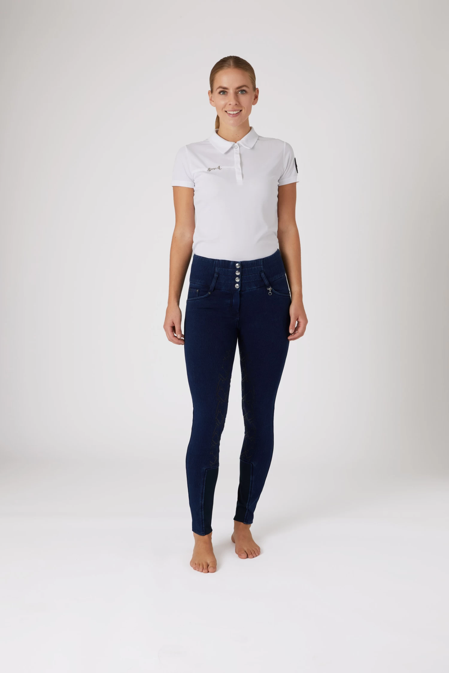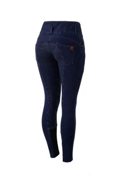 Our Kacy breeches are made from soft winter denim with a brushed fleece inside that will keep you nice and warm. The high waist supports you in the saddle. A silicone full seat ensures a good grip. These breeches have the look and feel of denim, but with more stretch, and without the weight of normal jeans.