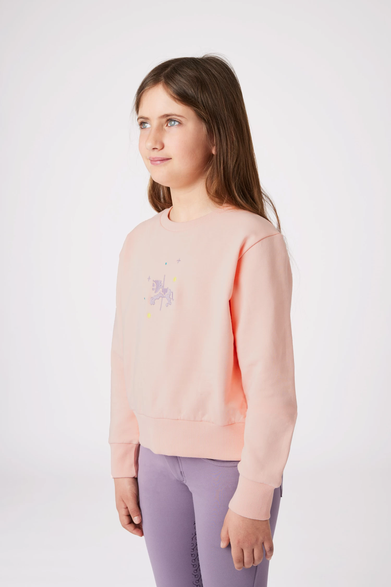 Match your pony’s outfit with the Horze Emmalyn Kids’ Sweater. The front is adorned with a delicate Magic Carousel embroidery. Softly brushed inside for added warmth.
