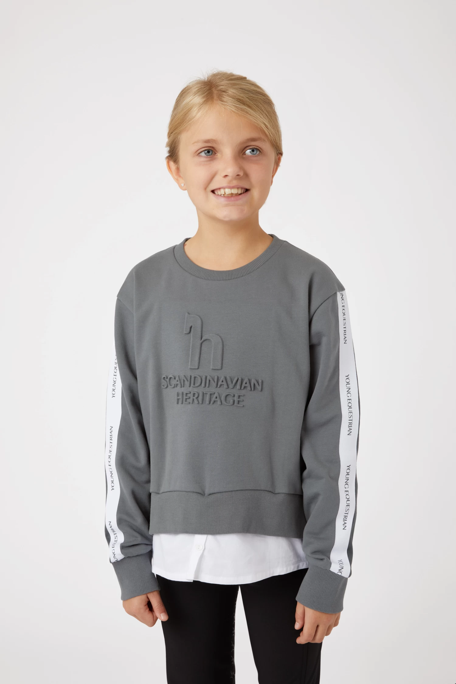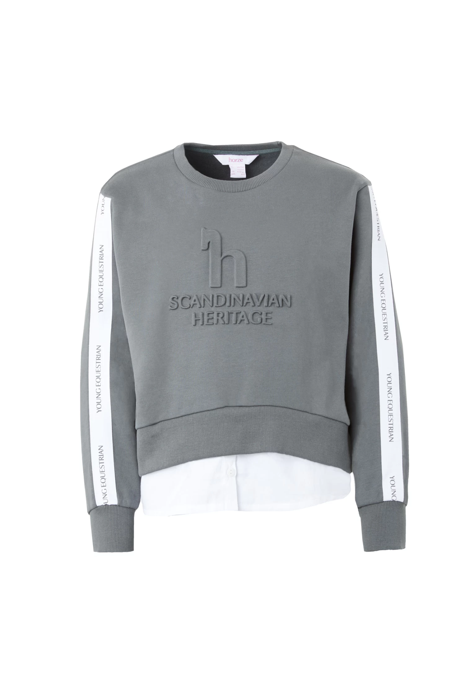 The Horze Leighton teens sweater with blouse is perfect for turning your riding outfit into an everyday look. The soft fabric with brushed inside is super comfortable while riding, and the light blouse can be attached for a cool, but smart look afterwards. Pair this sweater with your favourite Horze Leighton teens breeches or regular jeans, and you are good to go!