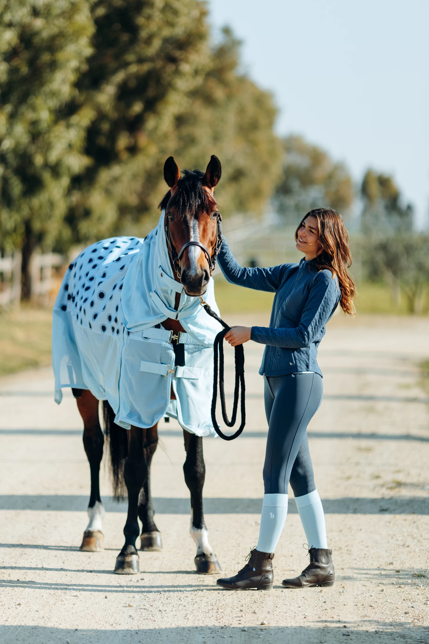 The Horze Minka breeches are made from firming material that supports you while feeling soft against your skin. The seams look flattering, and the elastic waist band in the back provides comfort. A mobile pocket at the thigh holds your phone. The full seat is equipped with silicone that will keep you safely in the saddle.