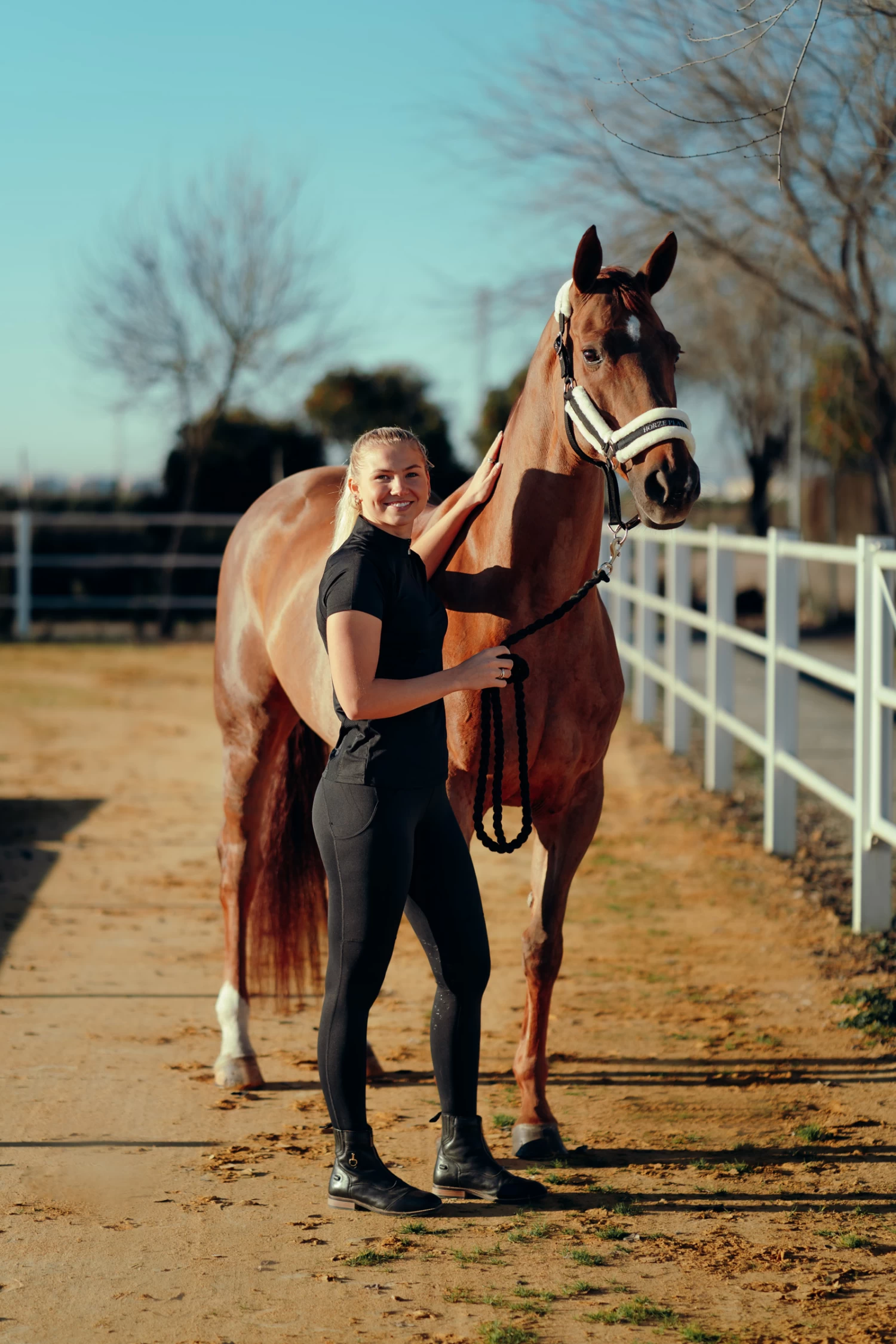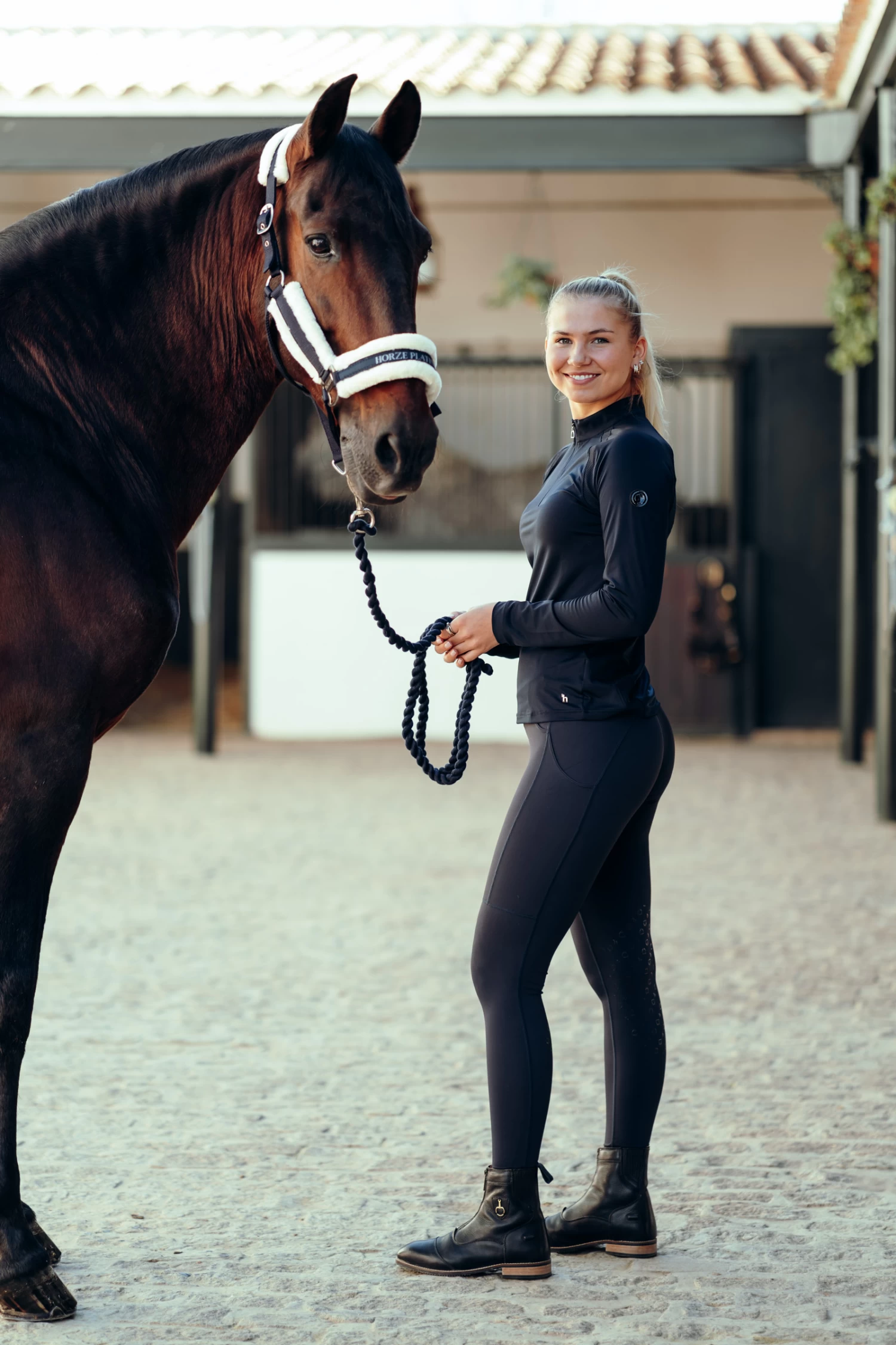 The Horze Nadia knee patch riding tights are super comfortable due to lightweight material and a high elastic waist. Two large pockets keep your phone safe, and two small pockets provide space for treats. Silicone grip keeps you safely in the saddle. Also available as full seat tights.