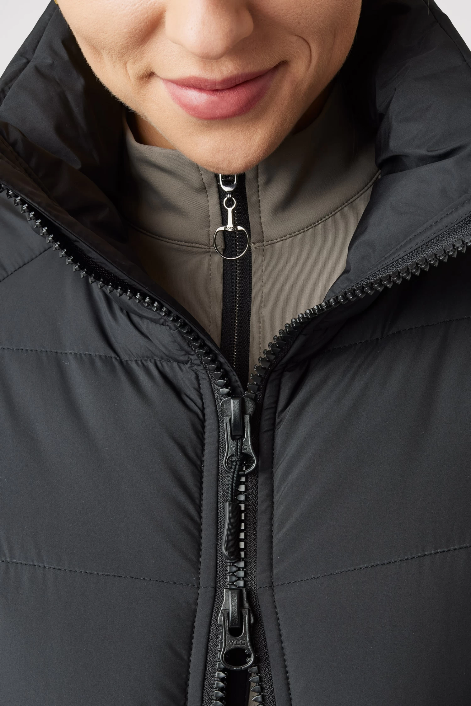 With a smooth hand feel and a non-shiny appearance, this jacket exudes a sophisticated look. The dirt repellent properties keep it looking clean and fresh. The stretch fleece back panel enhances mobility, allowing for comfortable movement. The jacket features big size zippers and convenient front pockets for storing essentials. The large stand-up collar adds a touch of elegance and provides extra protection from wind.