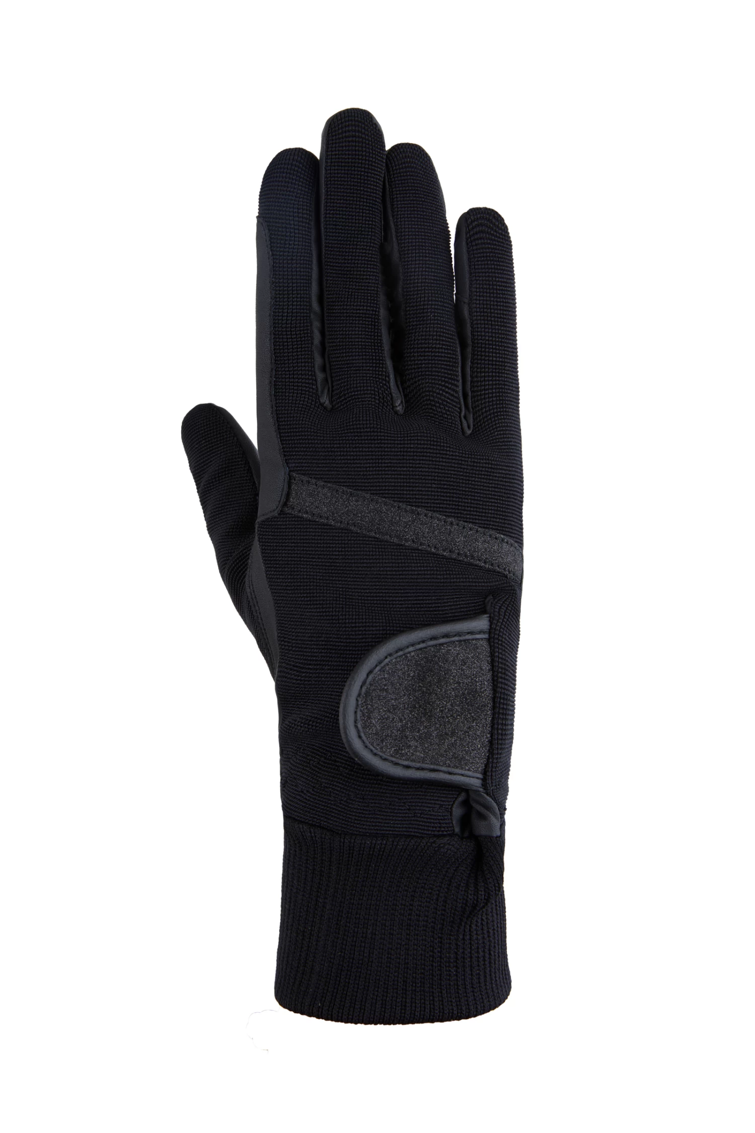 These well-fitting, stretchable gloves have a soft lining to keep you warm. Featuring an adjustable cuff fastener, they are ideal to wear when training or riding out on colder days, keeping you snug and comfortable. The glitzy black sparkle detail is stylish yet subtle, making this the perfect pair of gloves to complement your look.