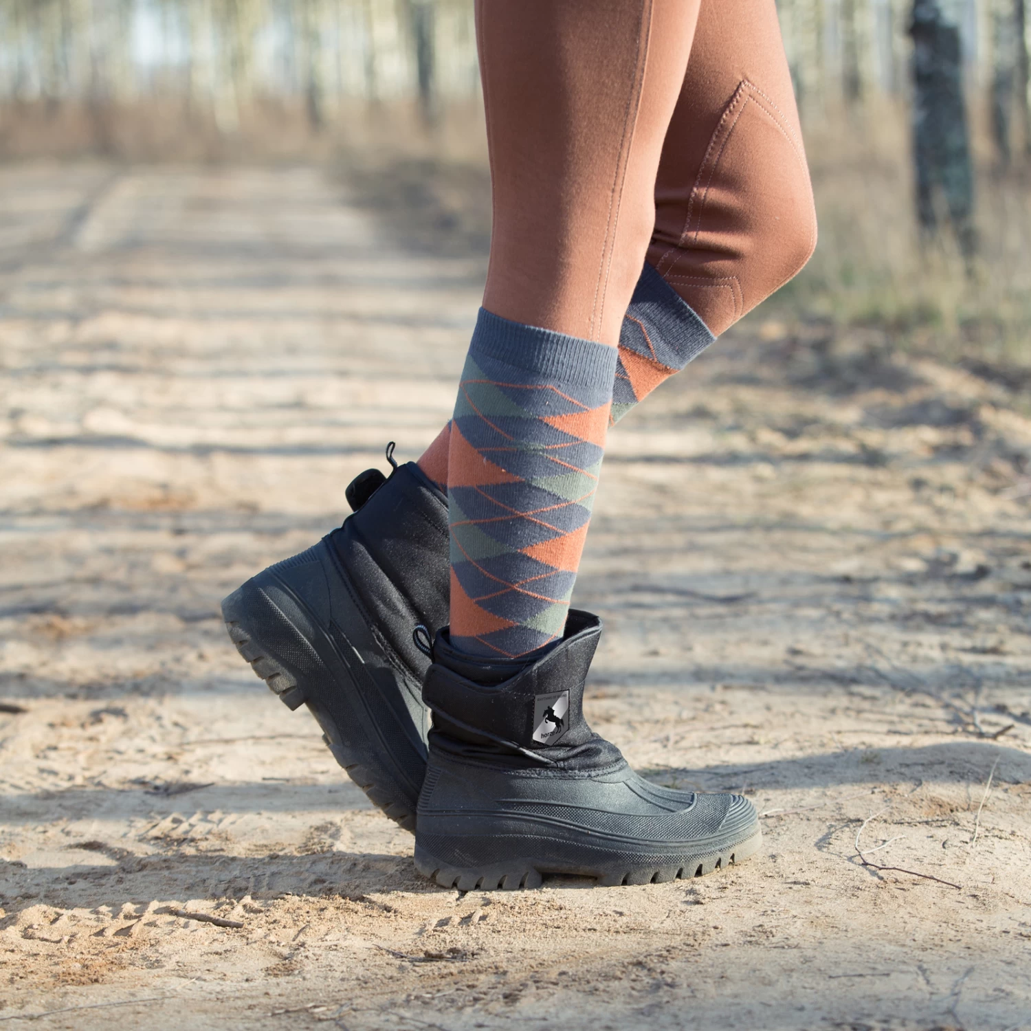 Practical, durable stable boots that provide comfort, safety and grip while you muck stalls or pitch hay. The easy hook-and-loop closure, warm terry lining and oxford nylon upper add comfort and support.