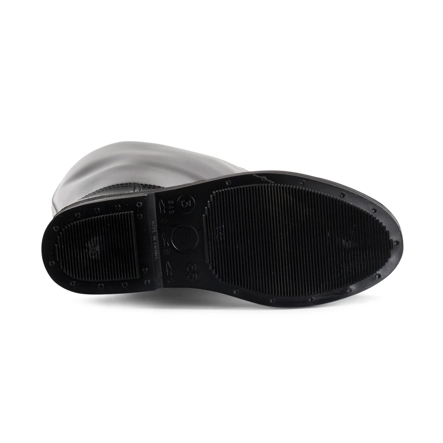Tall rubber riding boots that are priced right for an everyday simple choice. The sturdy sole and good grip provide stability while riding. Elastic side panels allow for flexibility.