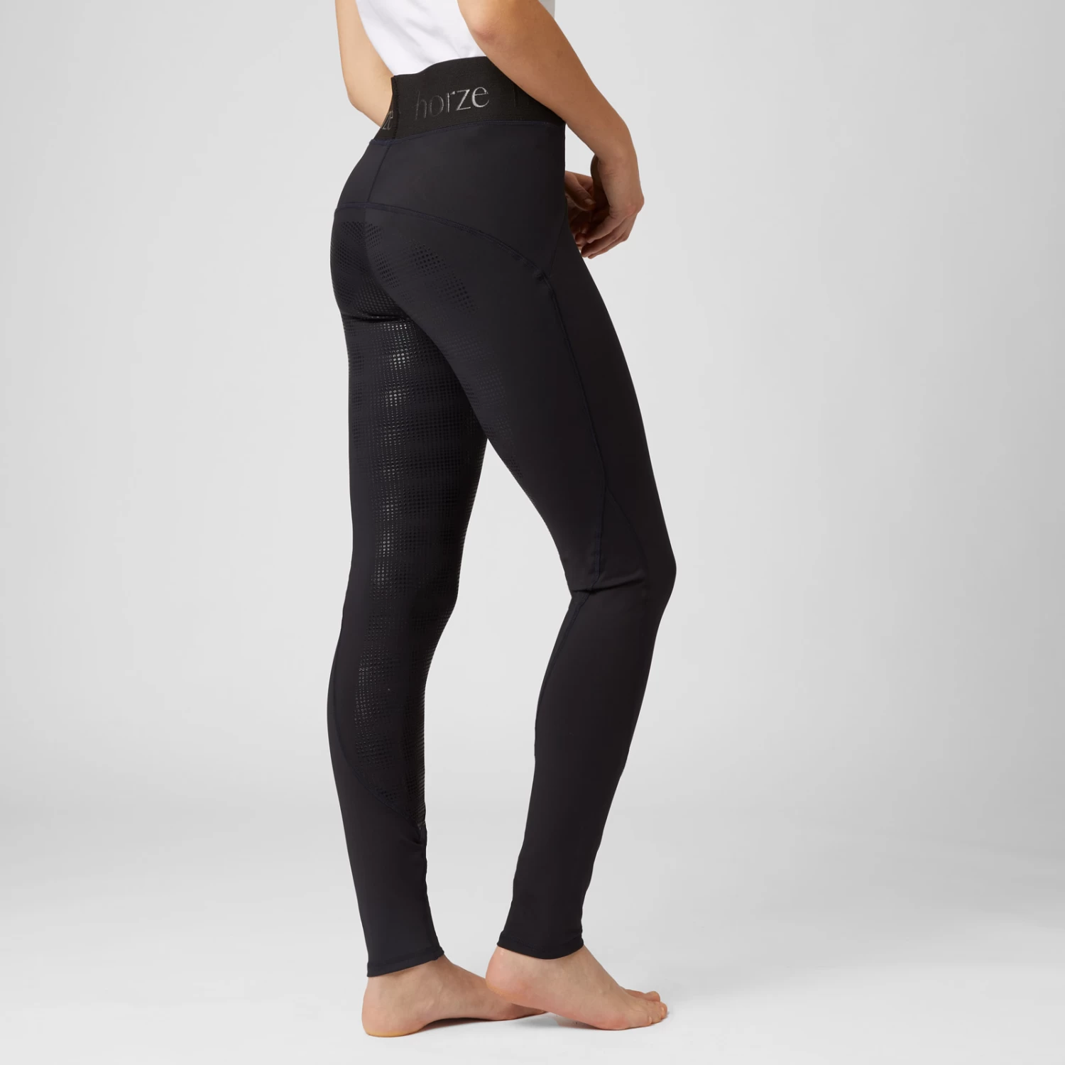 These riding tights are super elastic and sporty, with an extra flexible waistband that keeps you comfortable. The full seat provides grip to the saddle. The sporty look easily matches your everyday riding wardrobe.