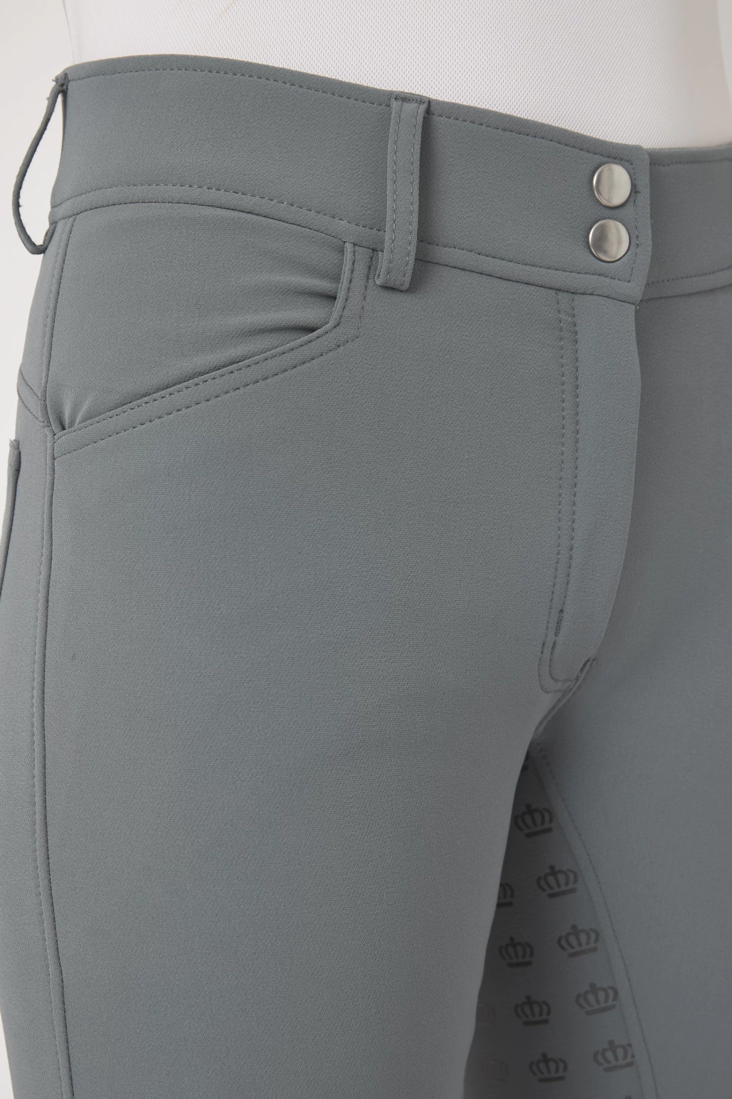 These gorgeous breeches take your outfit to the next level. A high waist keeps them in place, and the silicone full seat ensures good grip to the saddle. Elastic leg bottoms fit perfectly under your favourite boots. The back pockets are decorated with embroidery and crystals.