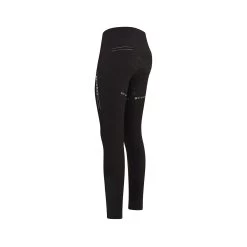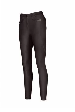 These riding tights have a full silicone seat, which ensures a secure fit in the saddle. The highly elastic stretch material ensures a perfect fit and optimum comfort. The fabric feels wonderfully soft and is also water and dirt repellent. The 2-way stretch fabric ensures a high level of wearing comfort. With branded metal coin and phonepocket at left riders leg.