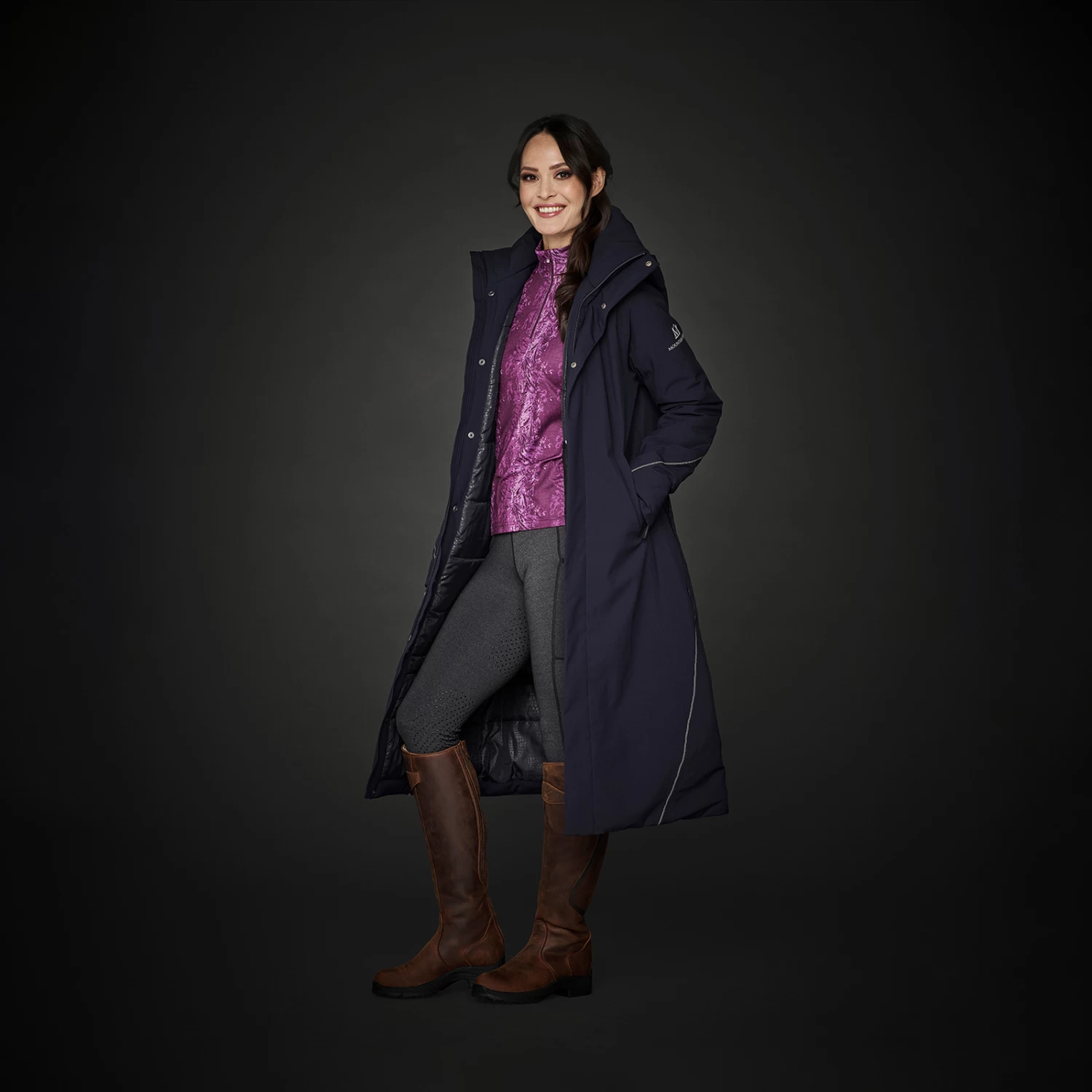 Alicia is a lightweight, padded coat with a detachable hood. The waterproof and windproof coat has a feminine cut that shapes the figure.. There are reflective details on the sleeves, back and front. So you are also clearly visible in the dark. With the 2-way zipper and long riding slit at the back that can be opened and closed with press studs, the coat is ideal for riding. For stowing treats and your mobile phone, there are zipped front pockets or an inner pocket made of mesh fabric.