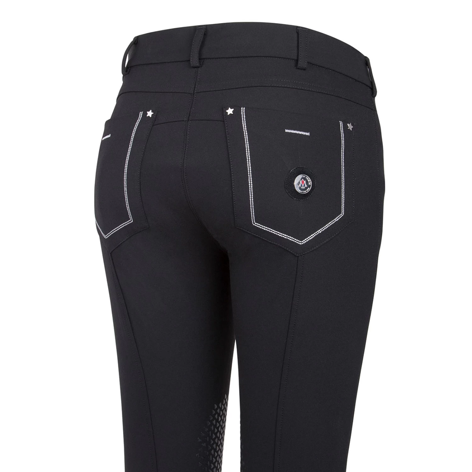 Trendy low waist breeches with stylish zipper detaling and MH grip technology at inside knee.