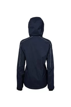 Long warm padded coat with high side slits. Reflective details, multiple front pockets with waterproof zipper closure. Protective detachable hood with silver lining.