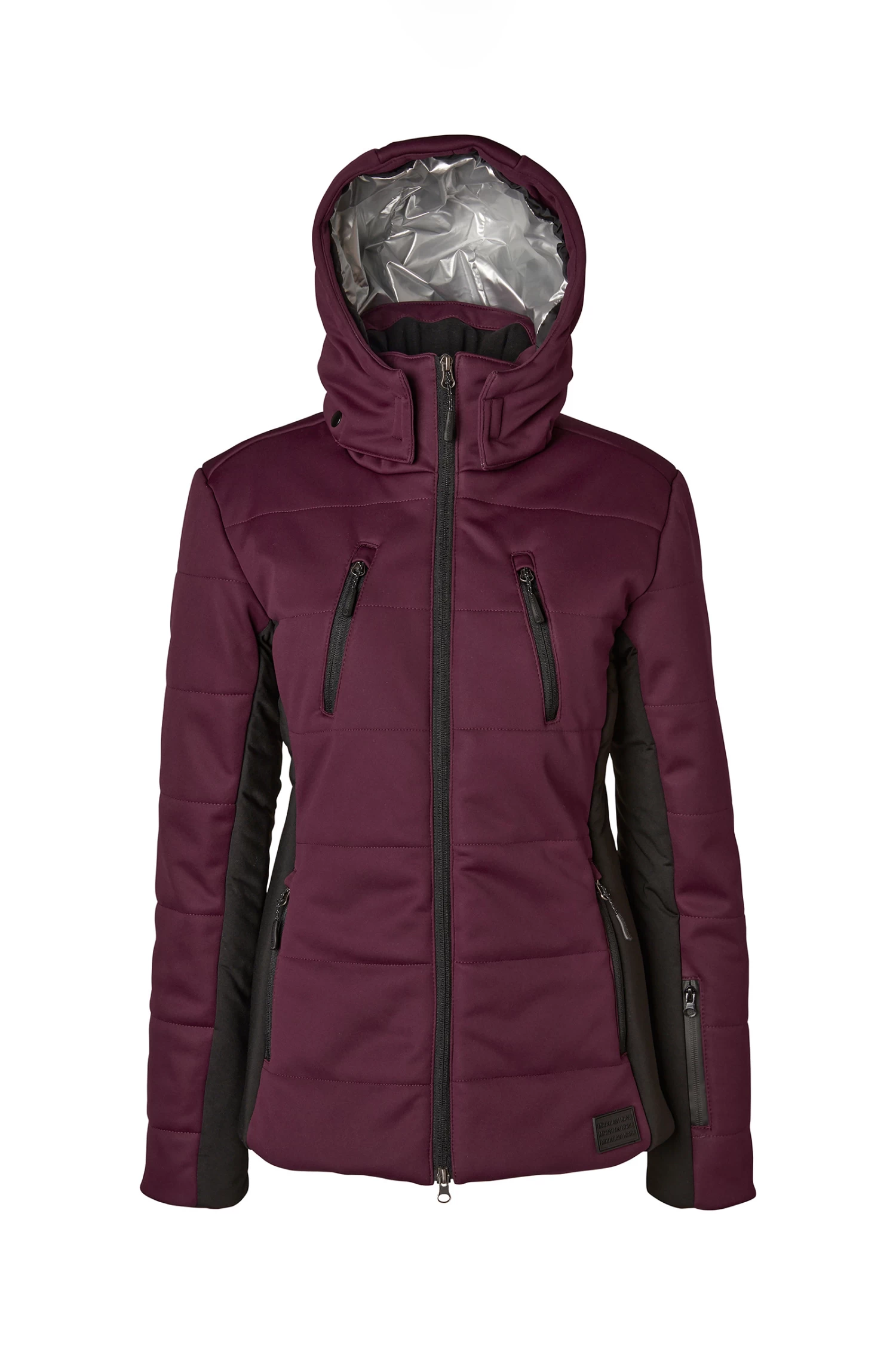 Water- and wind repellant padded hybrid jacket with silver colored fabric sections. Reflective details, front pockets with zipper closure, protective high collar and detachable hood.