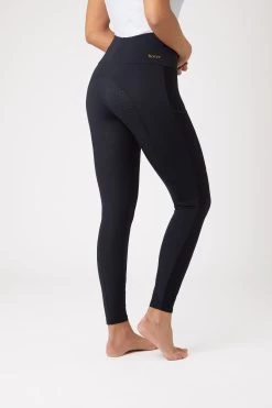 Hybrid grip riding tights made in stretchy, recycled polyester blend. The wide waistband with an overlap at front works as a comfortable feature as well as a sporty design detail – just like the tonal logo prints and spacious phone pocket.