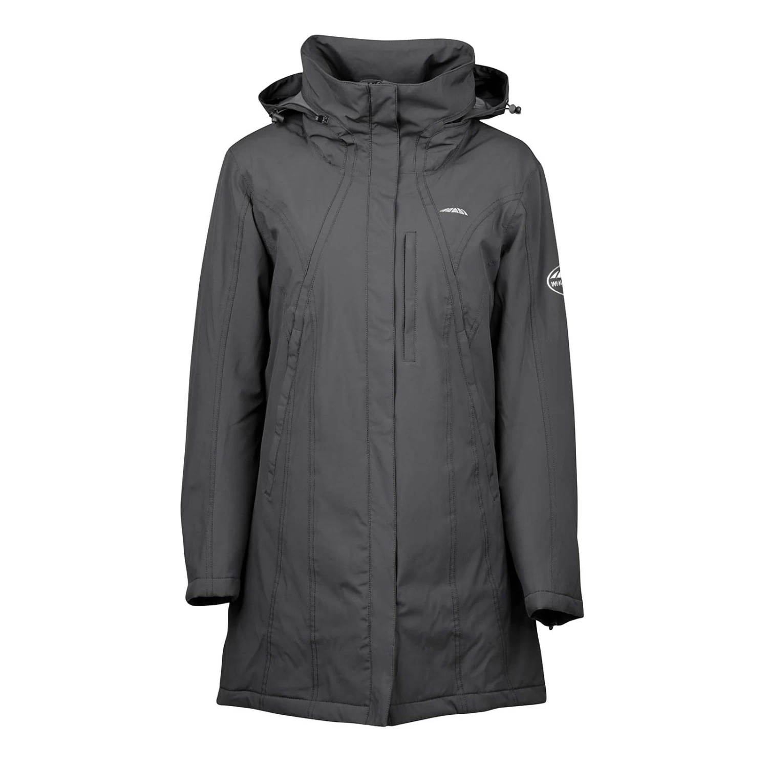 The WeatherBeeta Kyla Waterproof Jacket is a technical 100% waterproof, windproof and breathable jacket with taped seams and lined inner quilting. The waterproof front middle, chest. The chest and hand jacket pockets with zippers. A funnel high neck with lined hood and inner pockets.