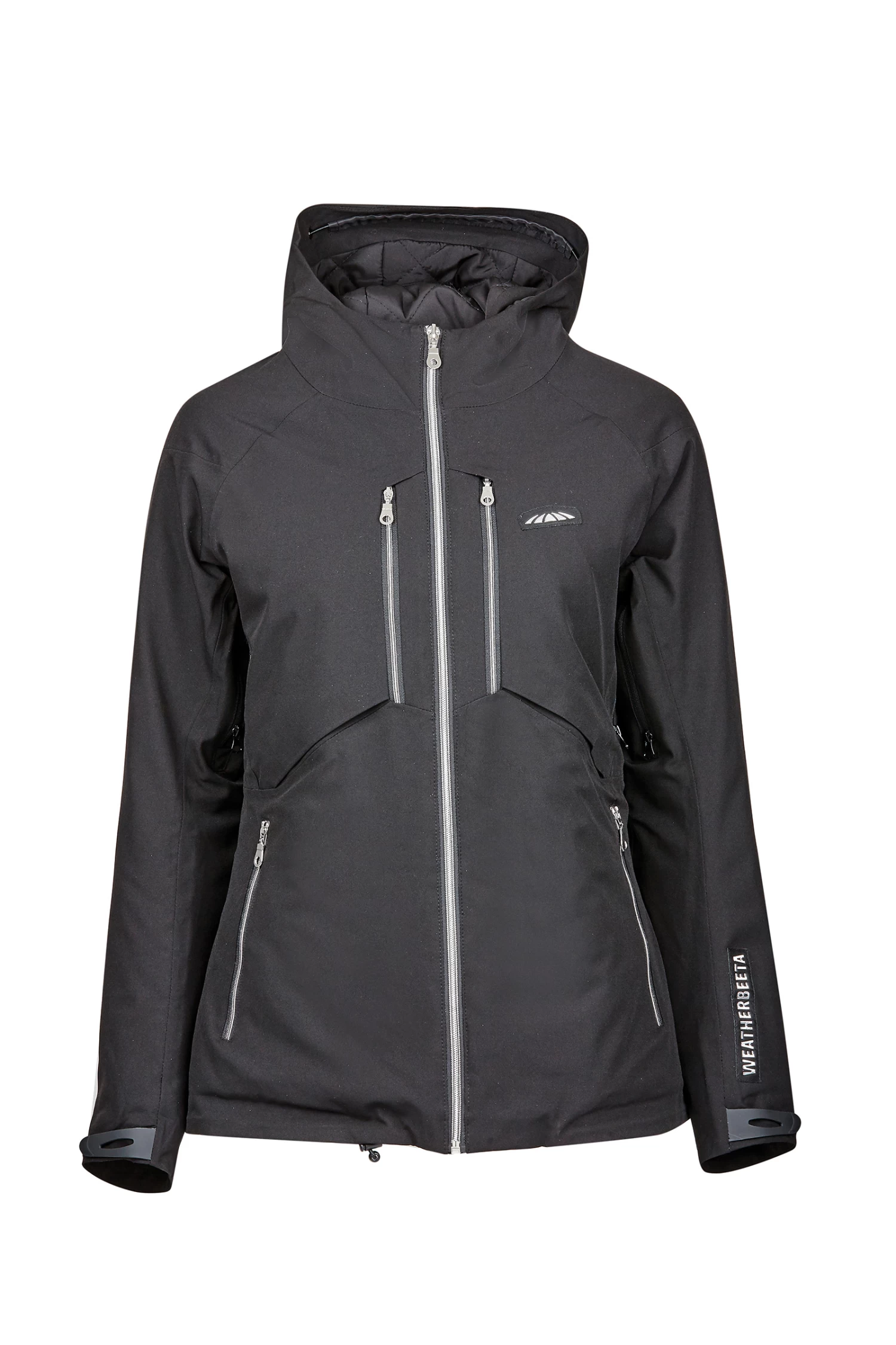 The WeatherBeeta Tania Waterproof Jacket is a technical 100% waterproof, windproof and breathable jacket with taped seams and Thermi-heat lining that uses thermal reflection to retain heat and prevent heat loss. The jacket has a waterproof center front. Chest and jacket zippers and a quilted hood. The underarm zipper is with technical mesh ventilation.
