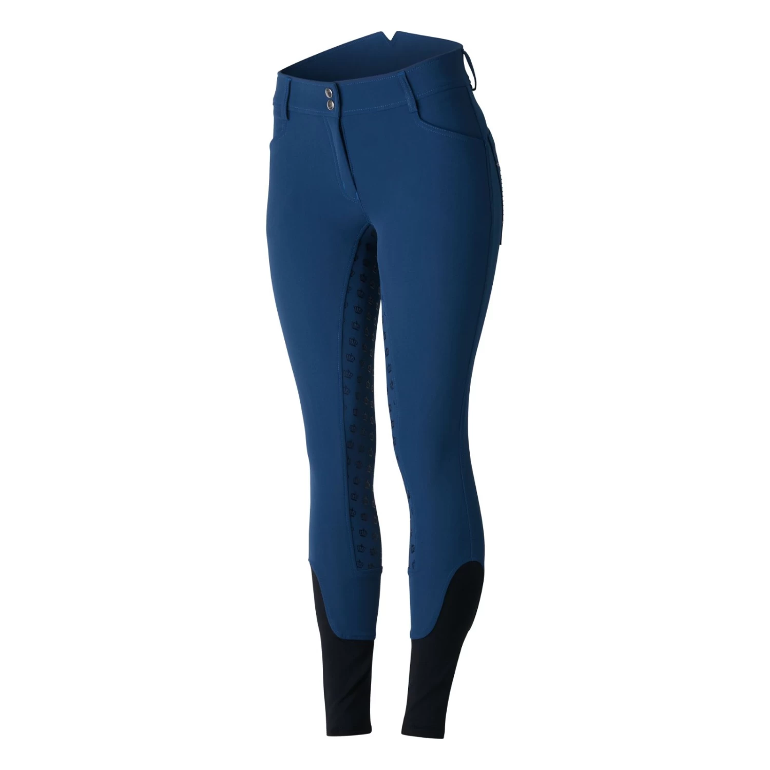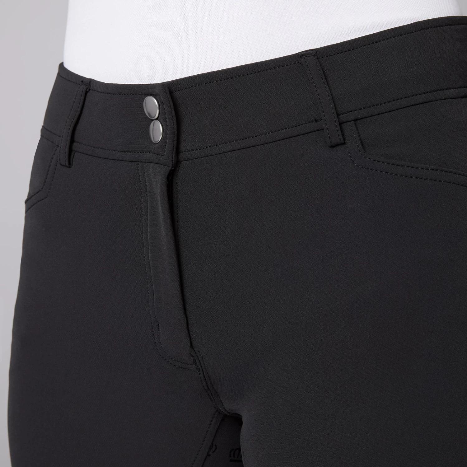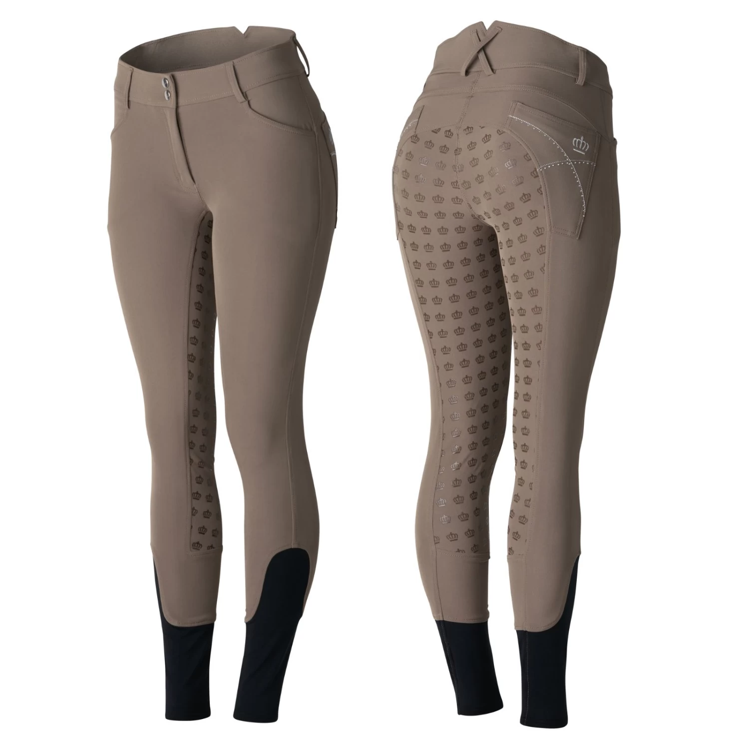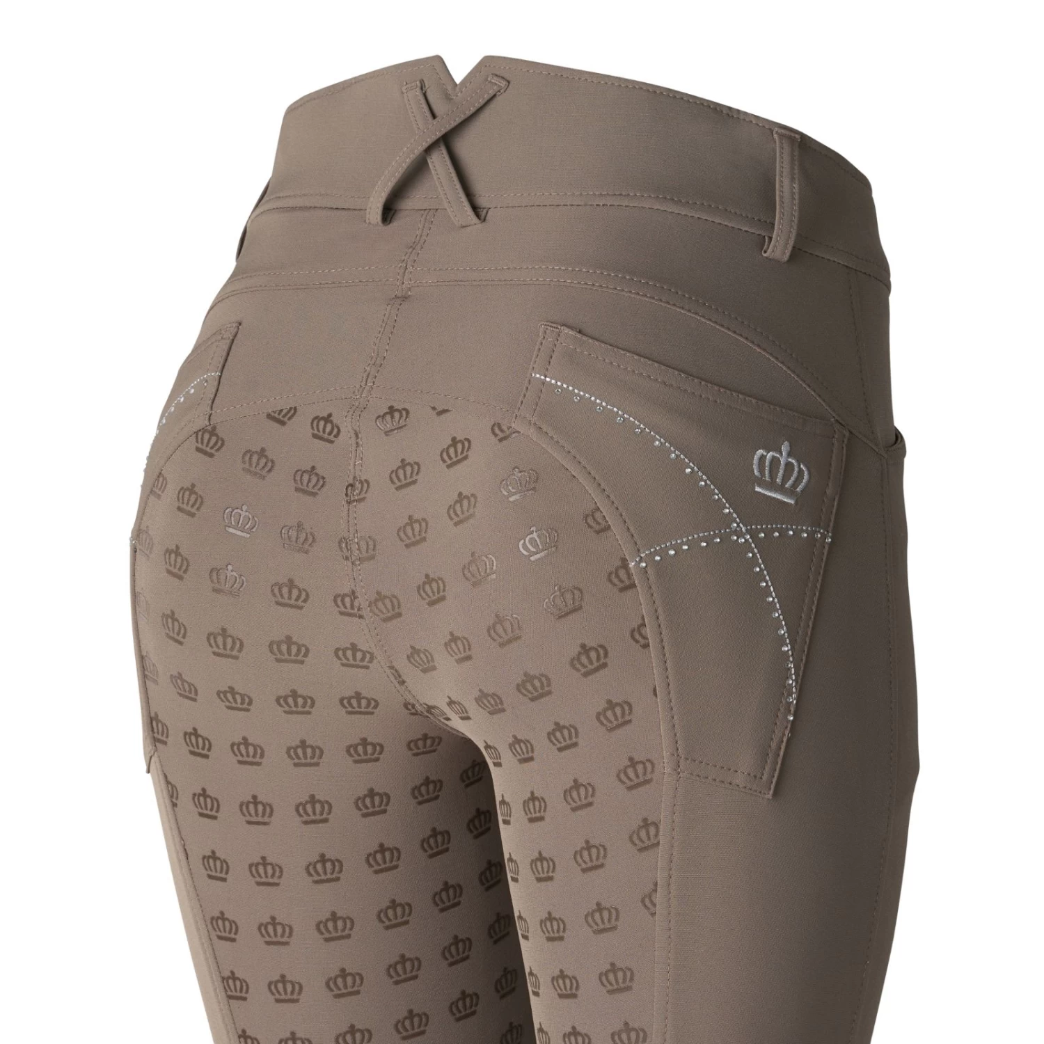 These gorgeous breeches take your outfit to the next level. A high waist keeps them in place, and the silicone full seat ensures good grip to the saddle. Elastic leg bottoms fit perfectly under your favourite boots. The back pockets are decorated with embroidery and crystals.